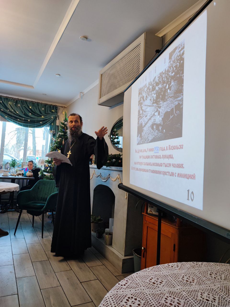 15 декабря в литературном кафе «Все в сад» в рамках встреч «Жизнь Церкви» прошли очередные краеведческие Свято-Никольские чтения. В этом году была выбрана тема: «Роль новомучеников и исповедников в церковной жизни города Козельска».
