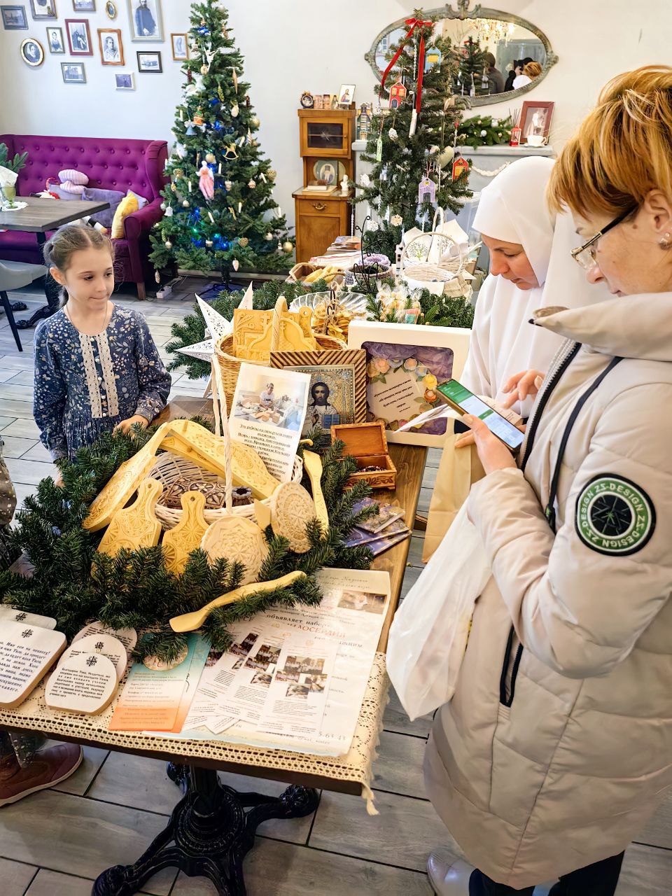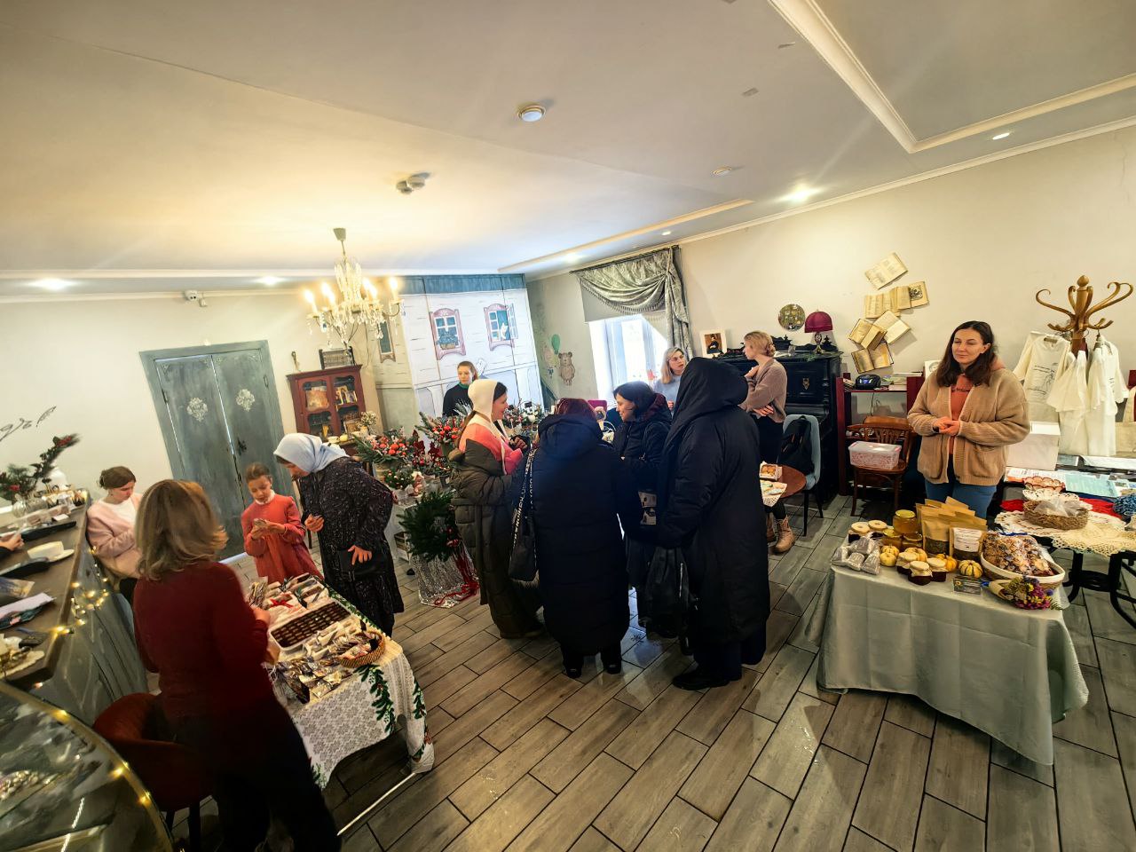 14 декабря в Литературном кафе «Все в садъ» города Козельска состоялась Рождественская ярмарка «Времена года», в которой приняло участие Епархиальное Сестричество Милосердия в честь святой царицы Александры Феодоровны. Атмосфера ярмарки отсылала посетителей в годы дореволюционной России, когда на ярмарках традиционно можно было общаться друг с другом на темы культуры и искусства, обсуждать ремесла и рукоделия, делиться знаниями и опытом, пробовать домашнюю сдобу и ароматный чай, не отходя от лотков с представляемыми товарами.