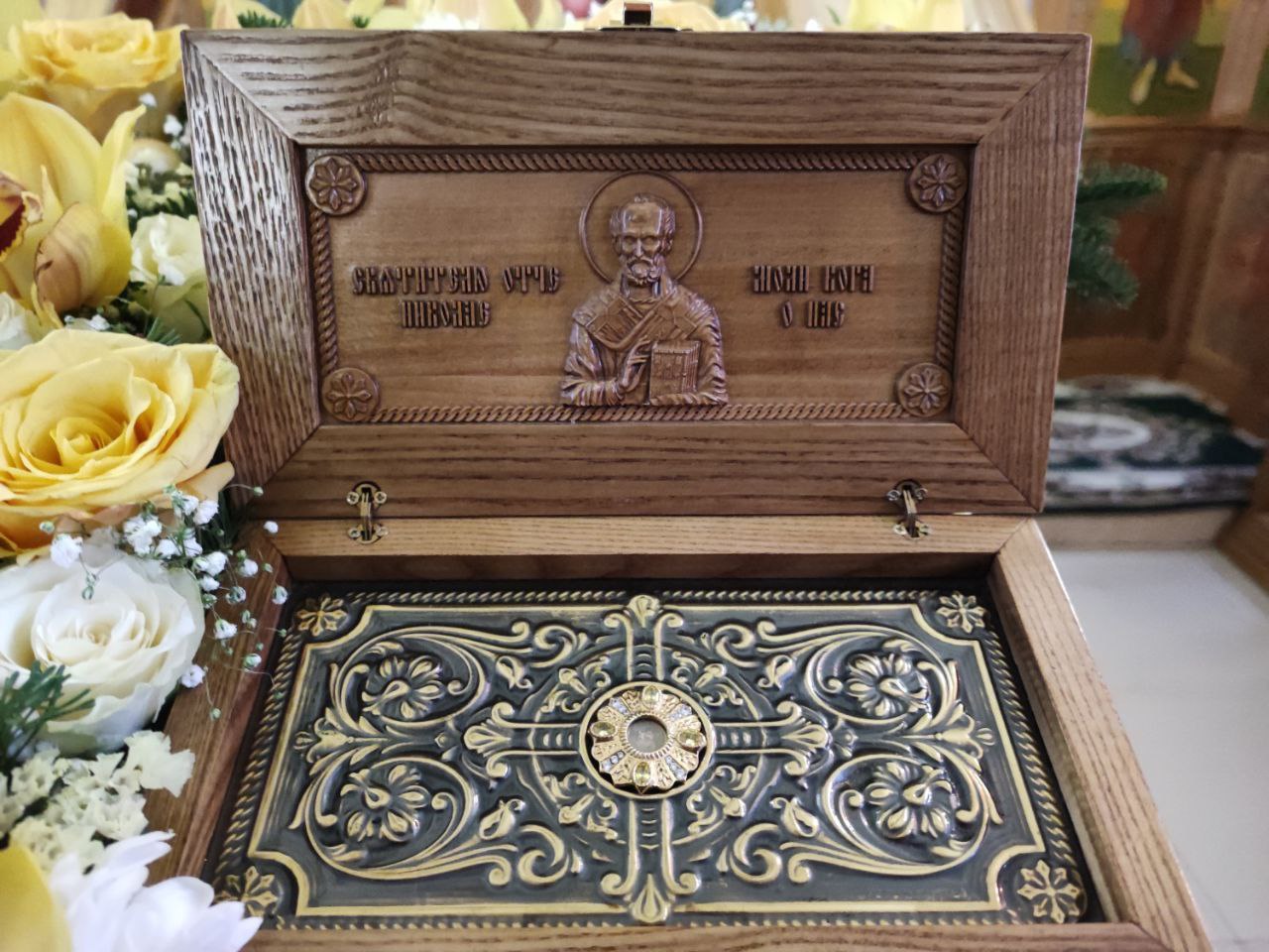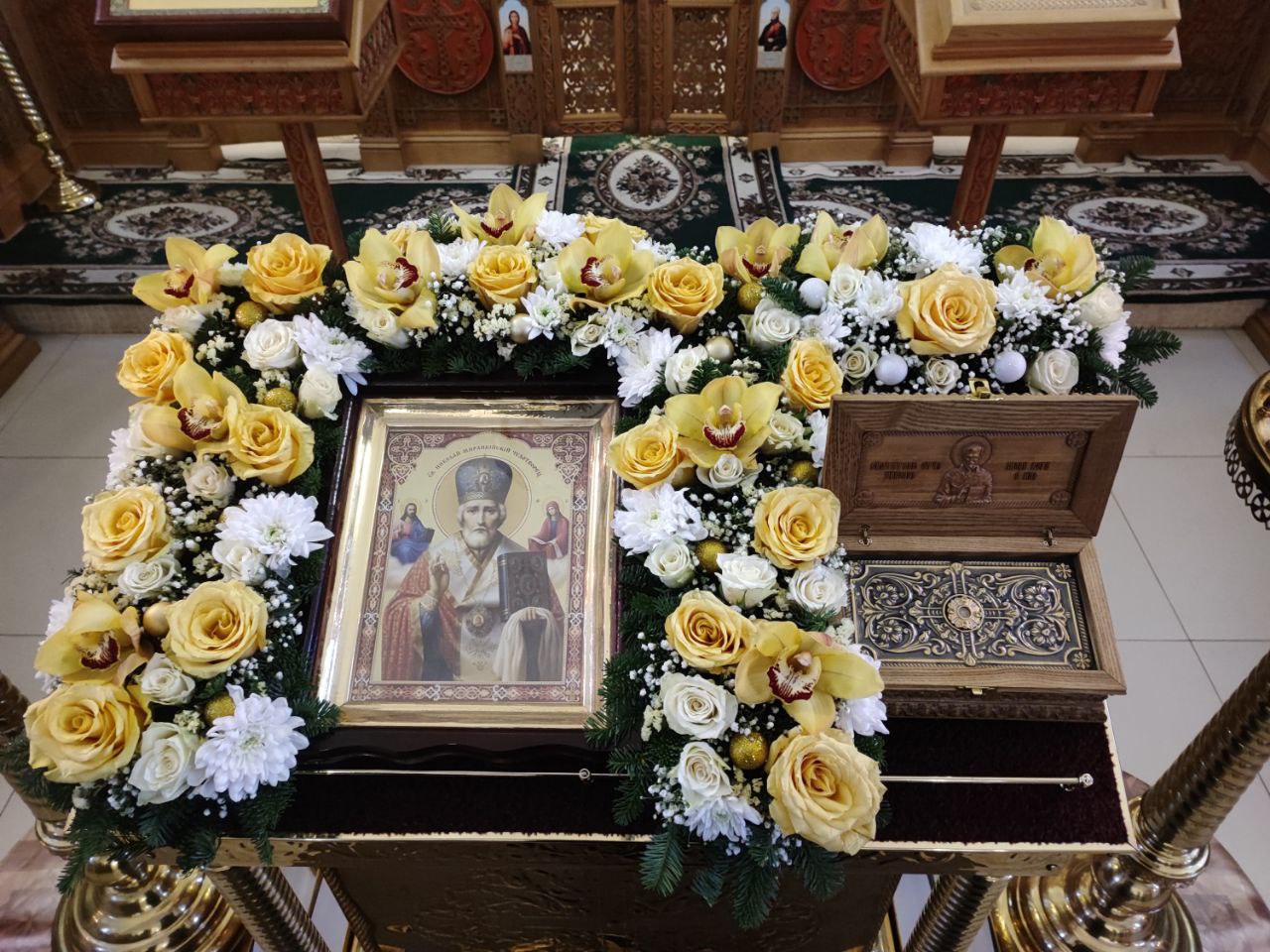 По отпусте литургии священнослужители совершили праздничный молебен пред образом святителя Николая, в завершении которого, вознеся молитву святому, владыка обратился к богомольцам с проповедью.