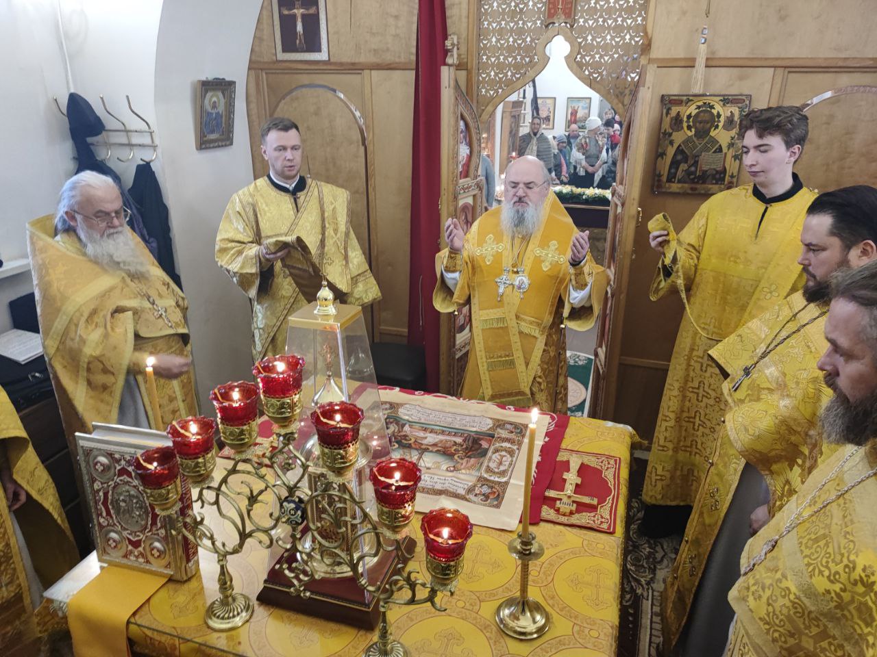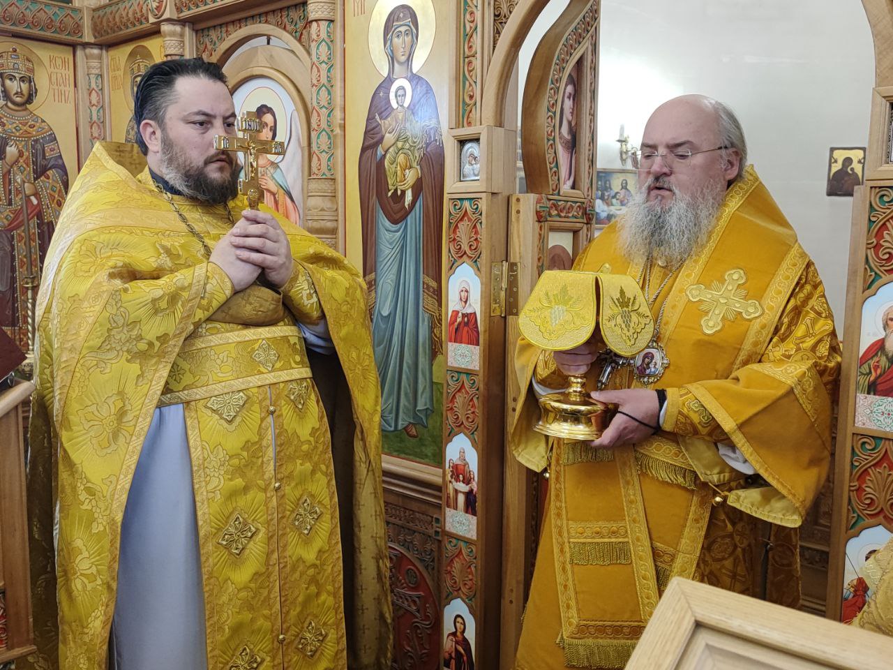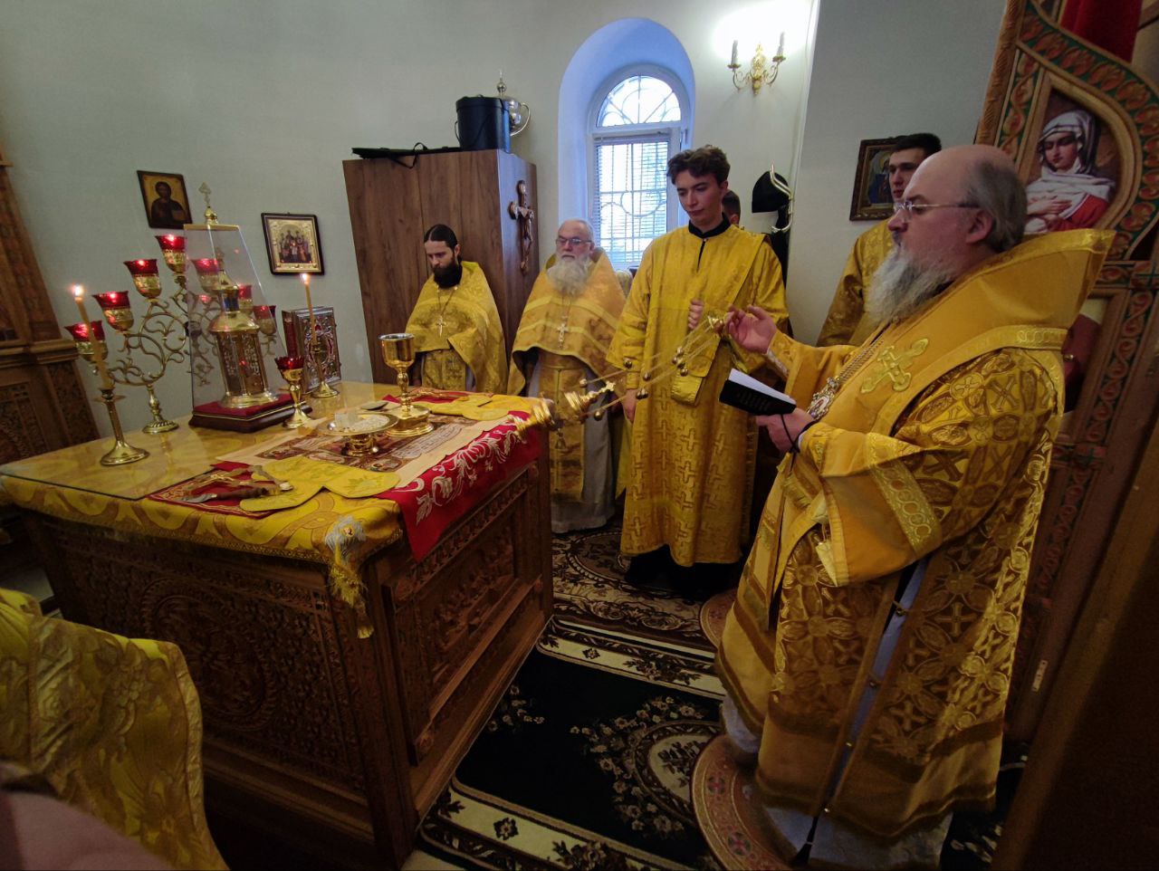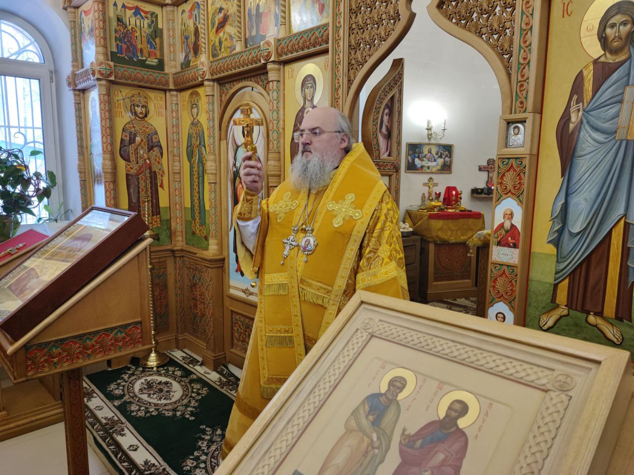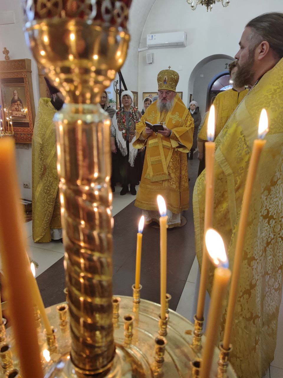 Архипастырю сослужили: протоиерей Алексий Жиганов, протоиерей Антоний Хатунцев, иерей Алексий Ефименков – благочинный округа, иерей Алексий Скрипкин – настоятель храма, диакон Евгений Ковригин и диакон Никита Агарев.