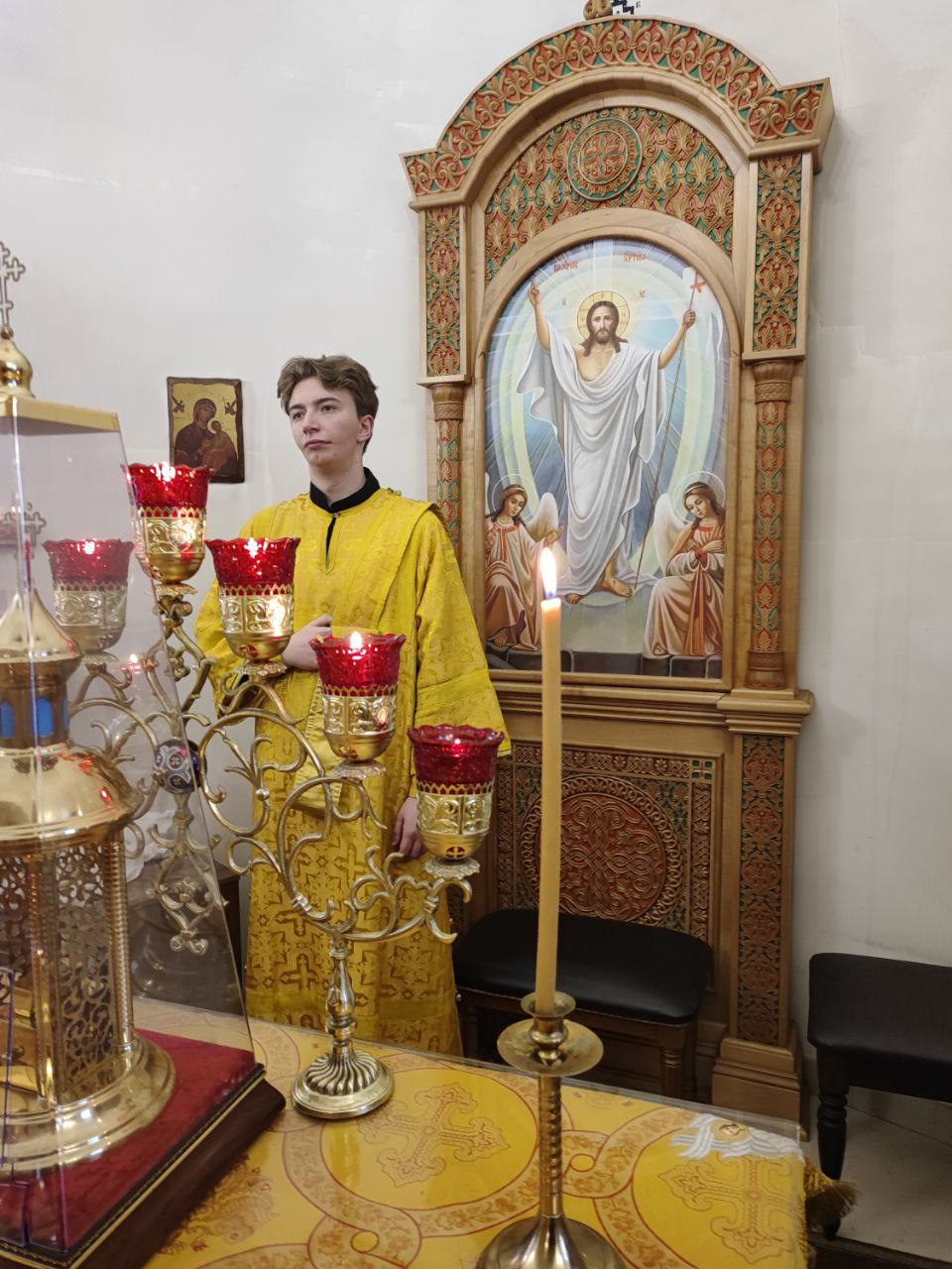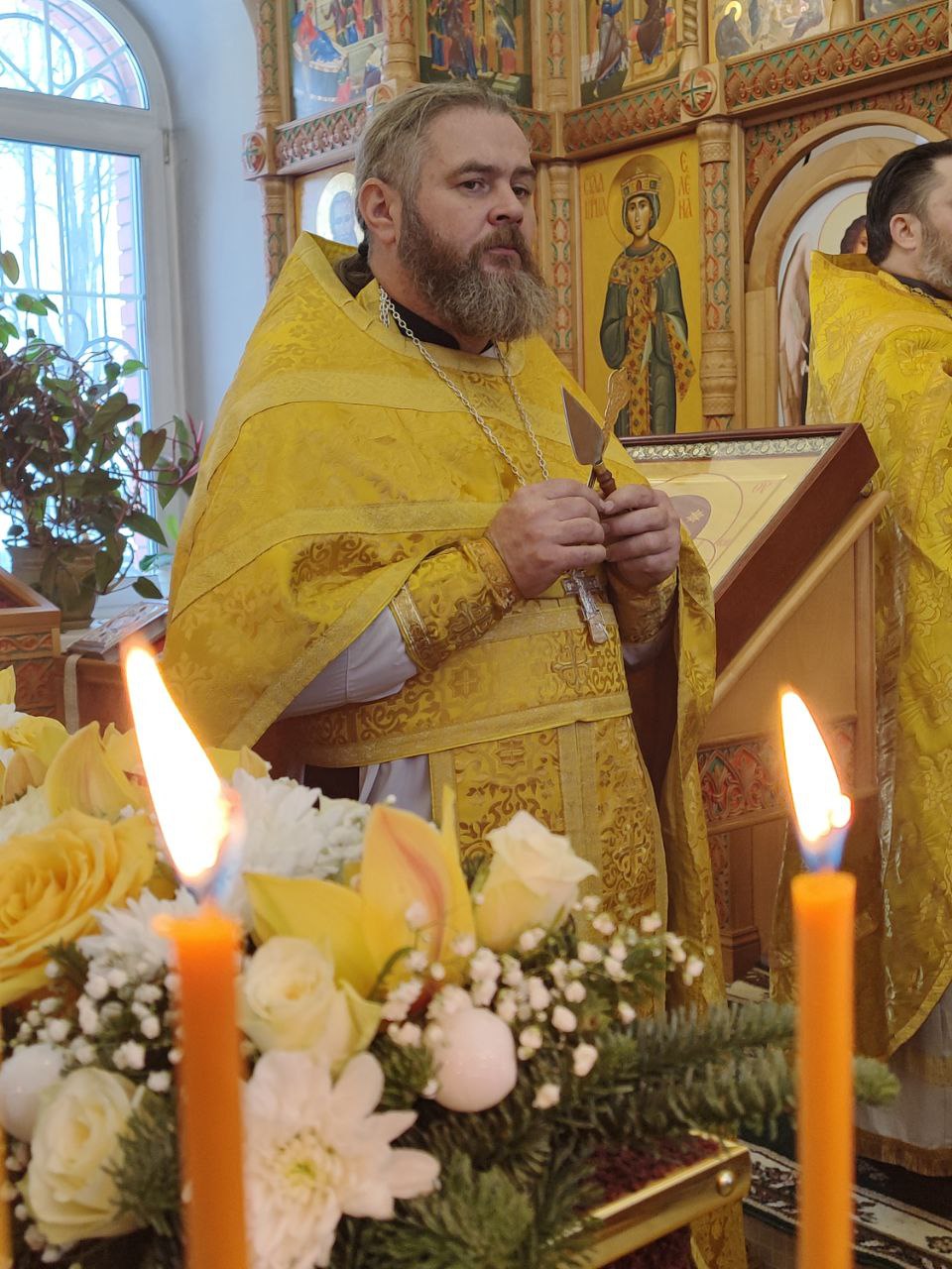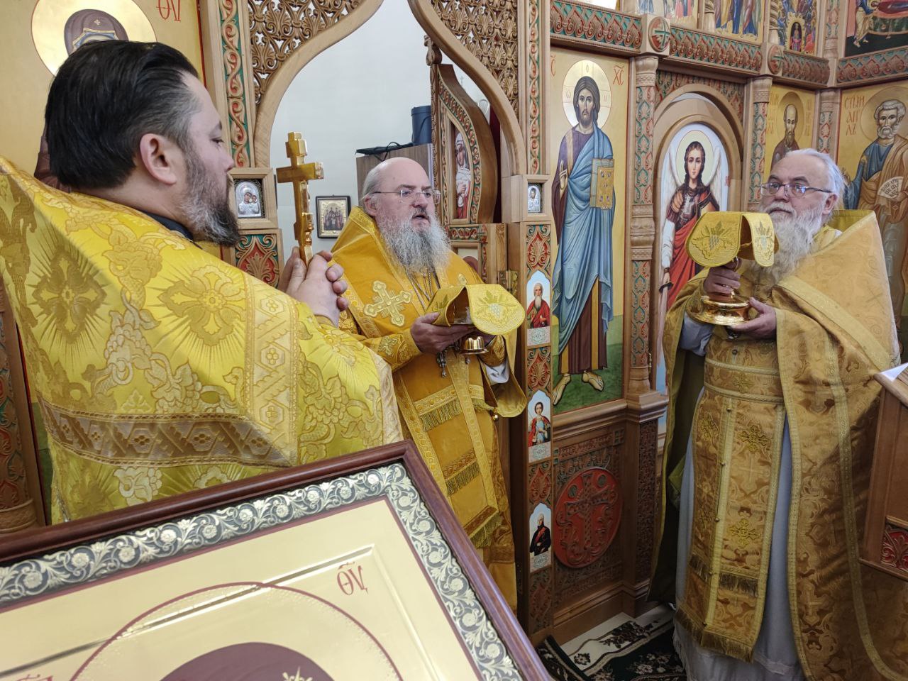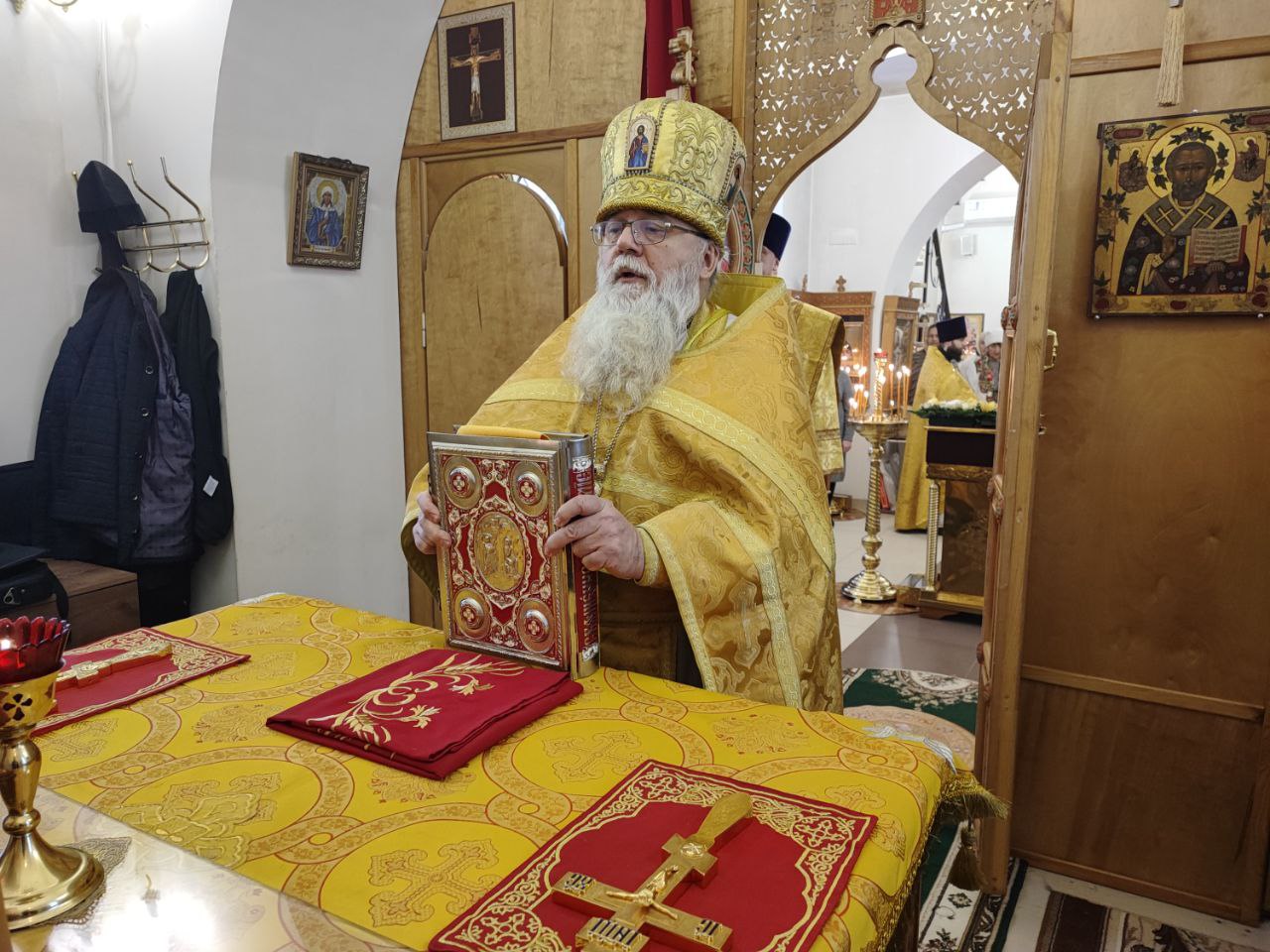 Архипастырю сослужили: протоиерей Алексий Жиганов, протоиерей Антоний Хатунцев, иерей Алексий Ефименков – благочинный округа, иерей Алексий Скрипкин – настоятель храма, диакон Евгений Ковригин и диакон Никита Агарев.