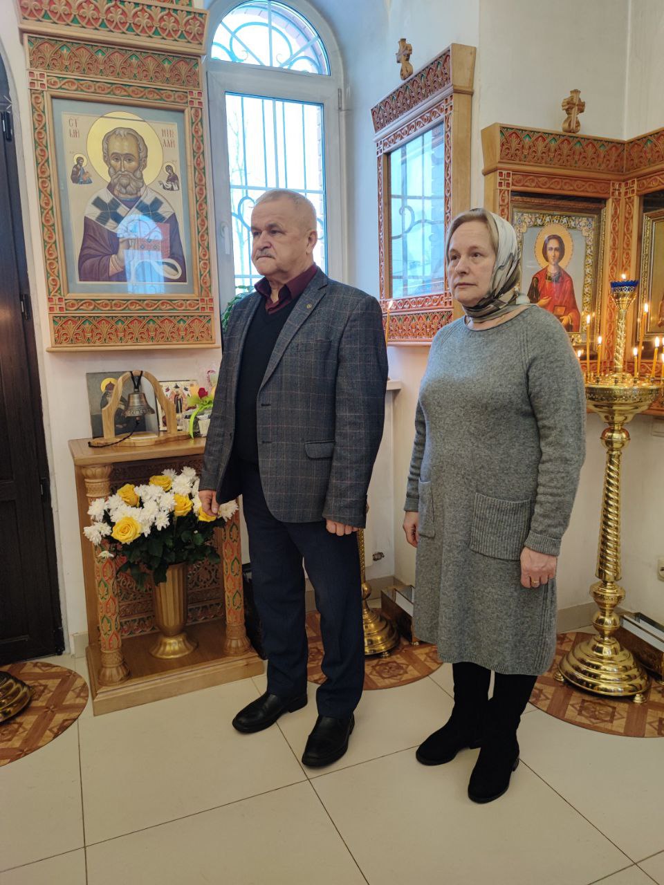 За богослужением молились ктитор храма Николай Николаевич Кленов с супругой Еленой Васильевной.