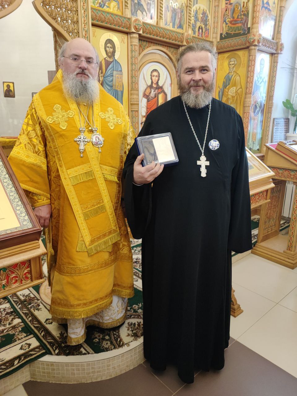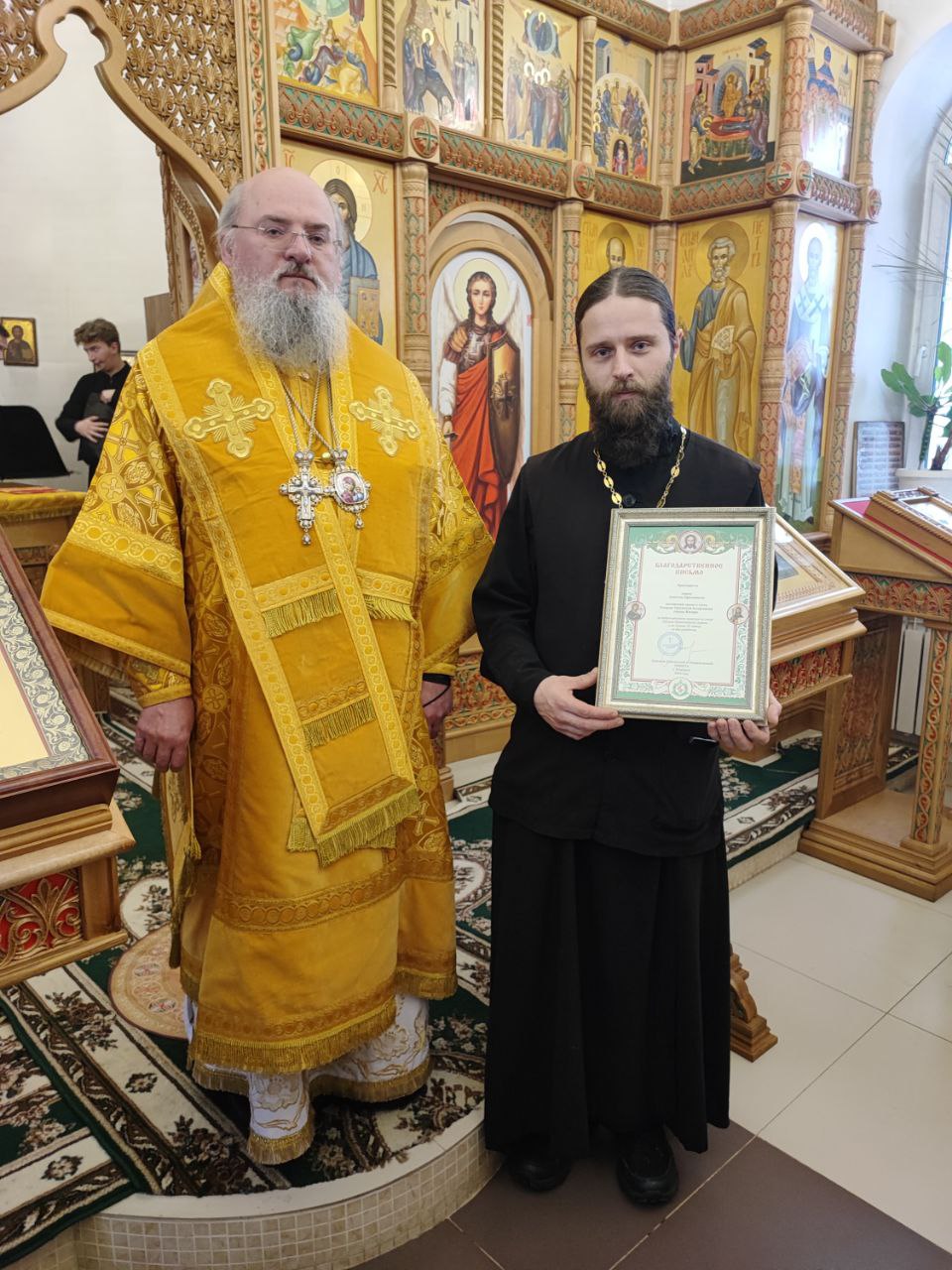 Епископ Никита также поздравил благочинного Жиздринского округа иерея Алексия Ефименкова с прошедшим 35летием и вручил ему Благодарственное Архиерейское письмо.