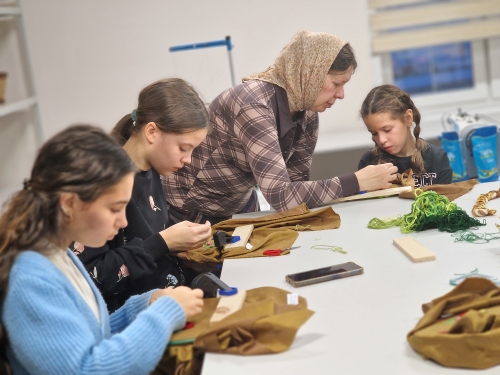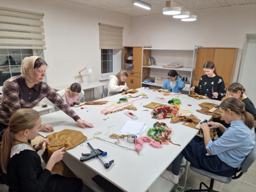 Детям очень нравится заниматься в светлых, тёплых, просторных мастерских, оборудованных всем необходимым. Матушка Александра отмечает, что есть очень талантливые рукодельницы. Перед началом занятий детей ждёт угощение.