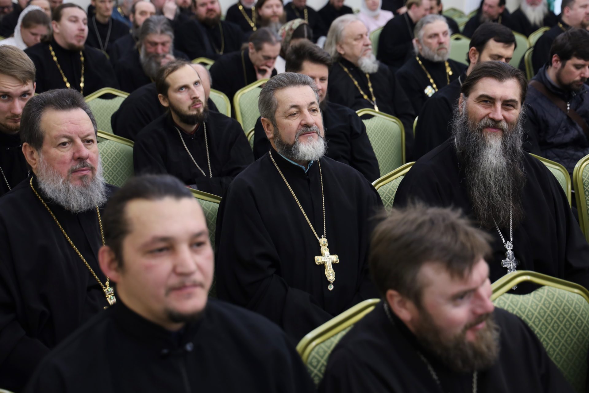 В заседании приняли участие архиепископ Песоченский и Юхновский Максимилиан, епископ Козельский и Людиновский Никита, секретари епархий, наместники и игуменьи монастырей, руководители епархиальных отделов, отцы благочинные, духовенство и миряне Калужской митрополии.