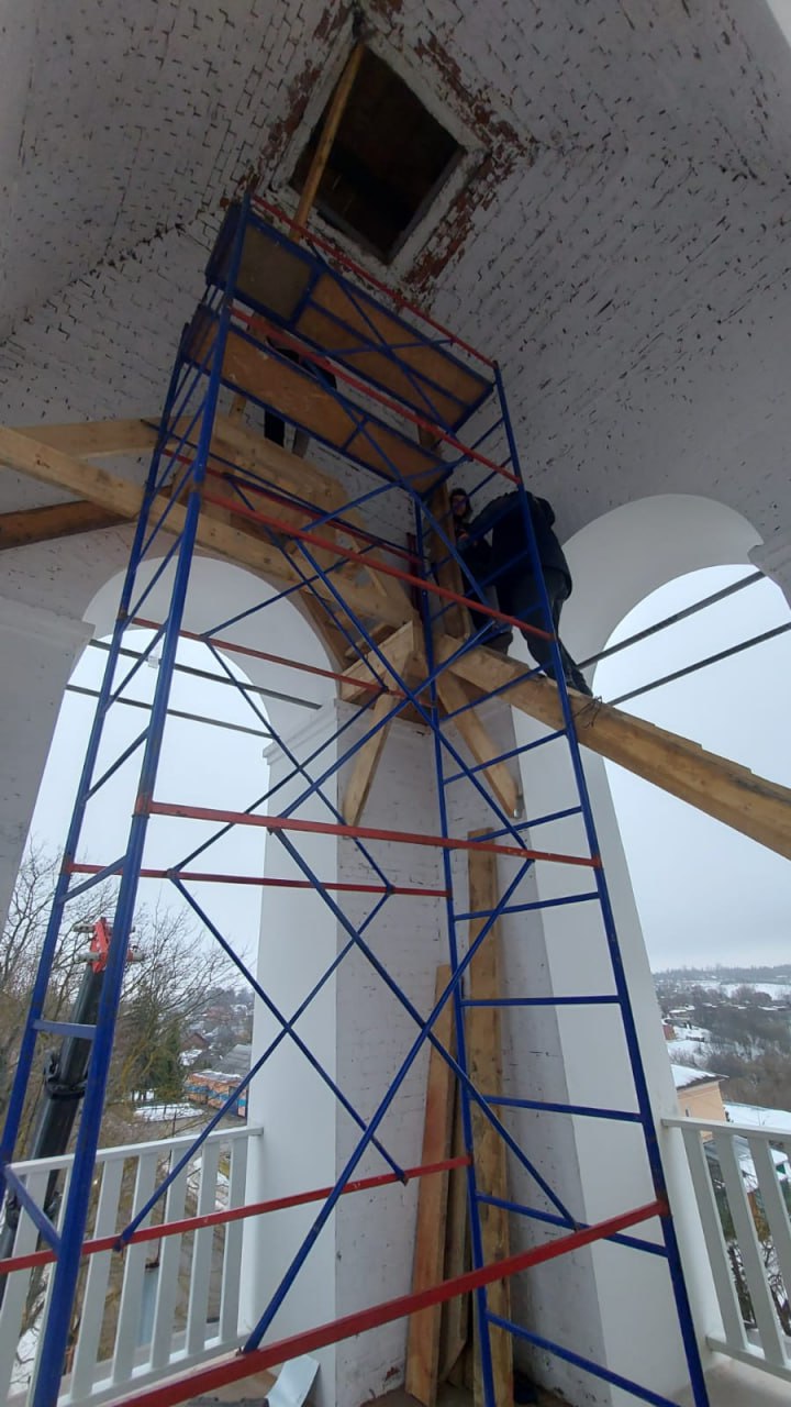После столетнего перерыва, над окрестностями Козельска вновь зазвучит колокольный благовест соборного храма. В ближайшие дни будет проводиться обустройство механизмов и рабочего подиума для звонаря на Успенской колокольне.