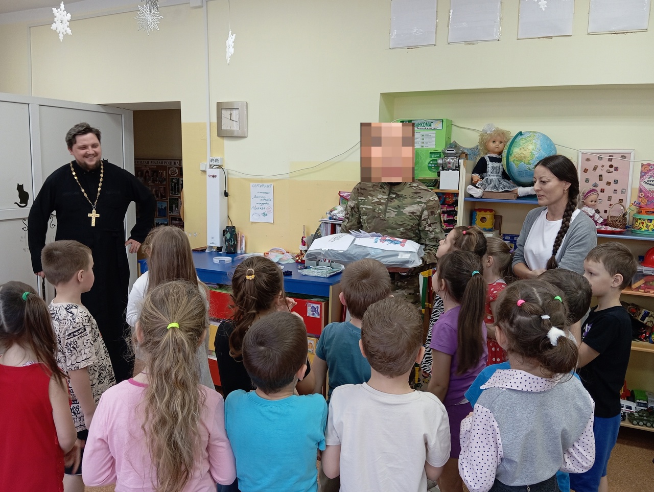 Акция «Носки солдату» прошла в детском саду «Рябинушка» города Людиново совместно с храмом в честь иконы Божией Матери «Живоносный Источник» города Людиново. МКДОУ «ДЕТСКИЙ САД № 14 «РЯБИНУШКА» города Людиново, группа «Муравьишки» провела акцию «Носки солдату», организованную совместно с храмом в честь иконы Божией Матери «Живоносный Источник». Инициатором акции выступил настоятель храма «Живоносный Источник» иерей Иоанн Майоров. Дети и родители с любовью собрали теплые носки и написали письма с поздравлениями к Новому году и Рождеству для наших защитников. Иерей Иоанн и воин, вернувшийся из СВО, посетили детский сад. Боец познакомился с ребятами и выразил им искреннюю благодарность за трогательные подарки и добрые слова.