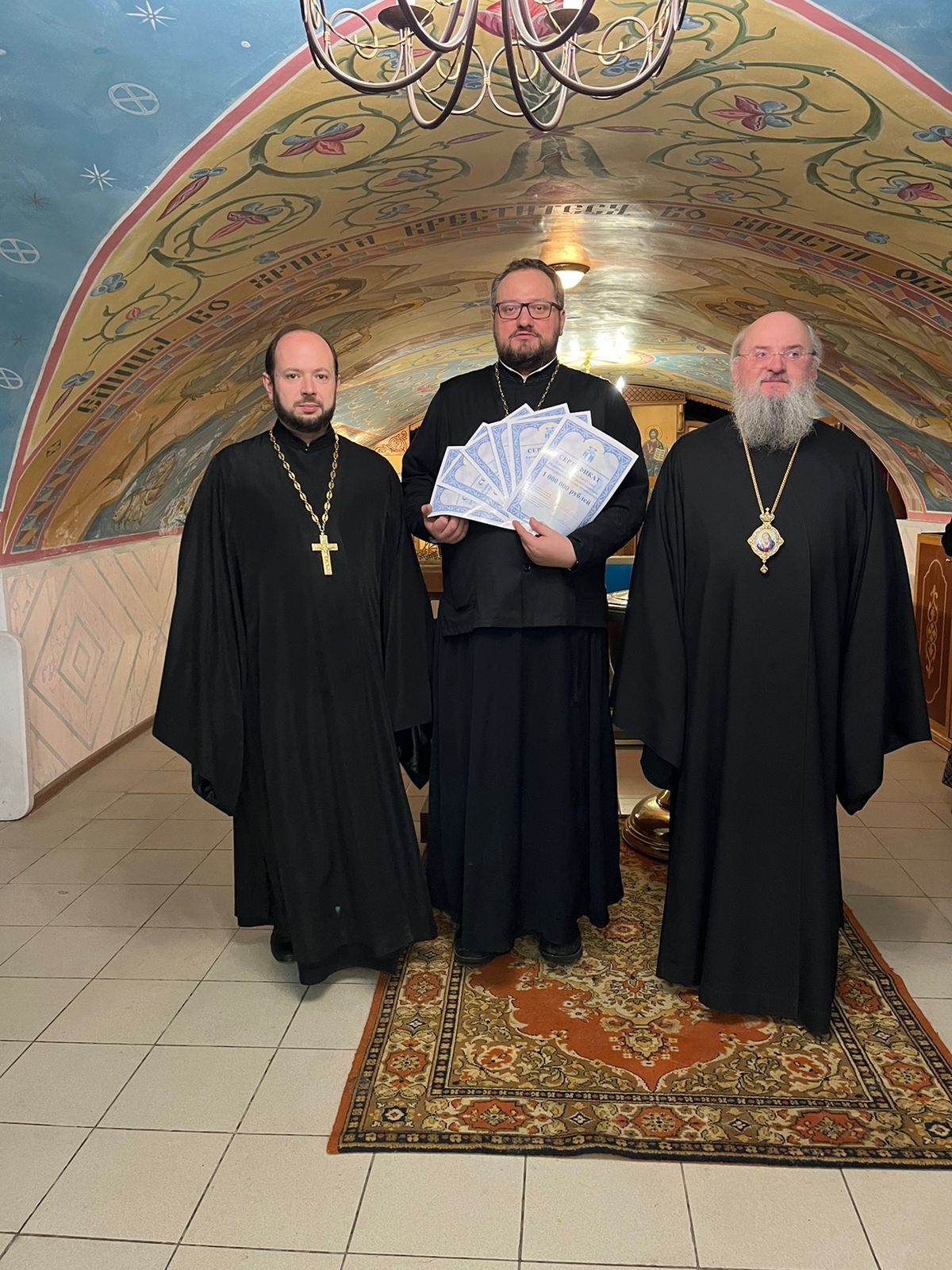 Далее, иерей Владислав Береговой, ответственный за направление по защите семьи, материнства и детства при Отделе по церковной благотворительности и социальному служению Песоченской епархии поделился опытом работы по оказанию помощи просителям, после чего, иерею Владиславу были вручены сертификаты на собранные суммы средств в помощь просителям.