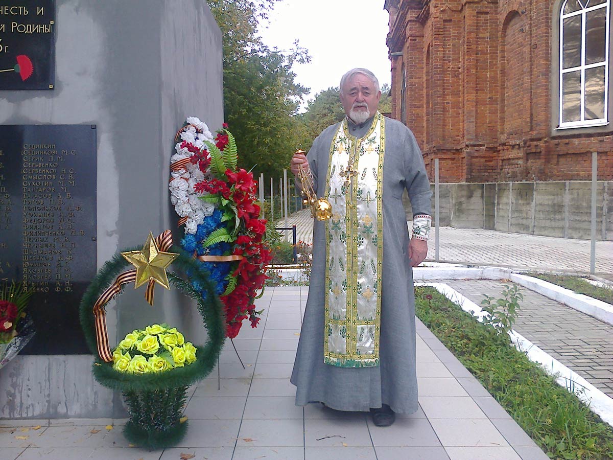 К подножию поклонного креста были возложены венки и цветы в память погибших защитников родного города. В этот памятный день молитвенное заупокойное поминовение было завершено Божественной Литургией и Панихидой.