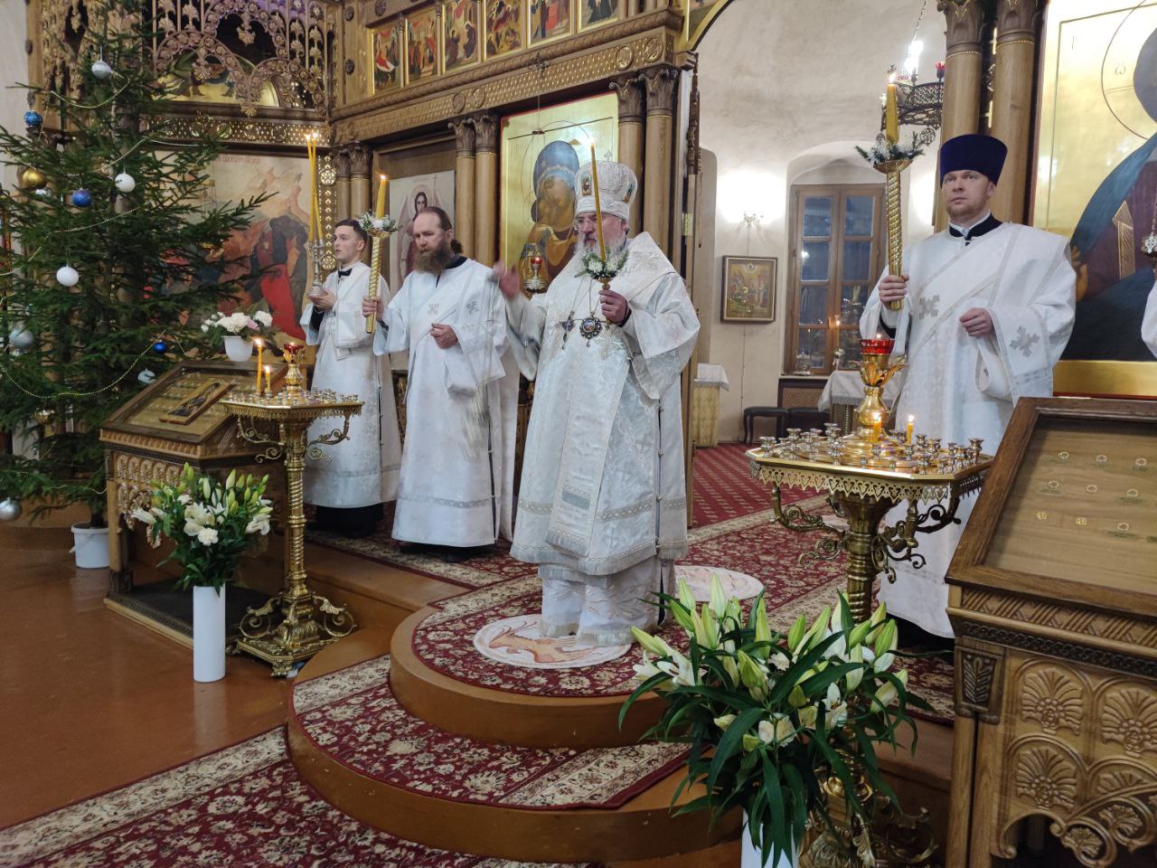 Вечером 6 января епископ Козельский и Людиновский Никита возглавил всенощное бдение праздника Рождества Христова в Успенском кафедральном соборе города Козельска. Архипастырю солужили: настоятель храма иеромонах Паисий (Курмаз), иерей Елисей Тимофеев, иерей Евгений Чуркин, диакон Евгений Ковригин, диакон Дмитрий Лутков и диакон Александр Карпенко.