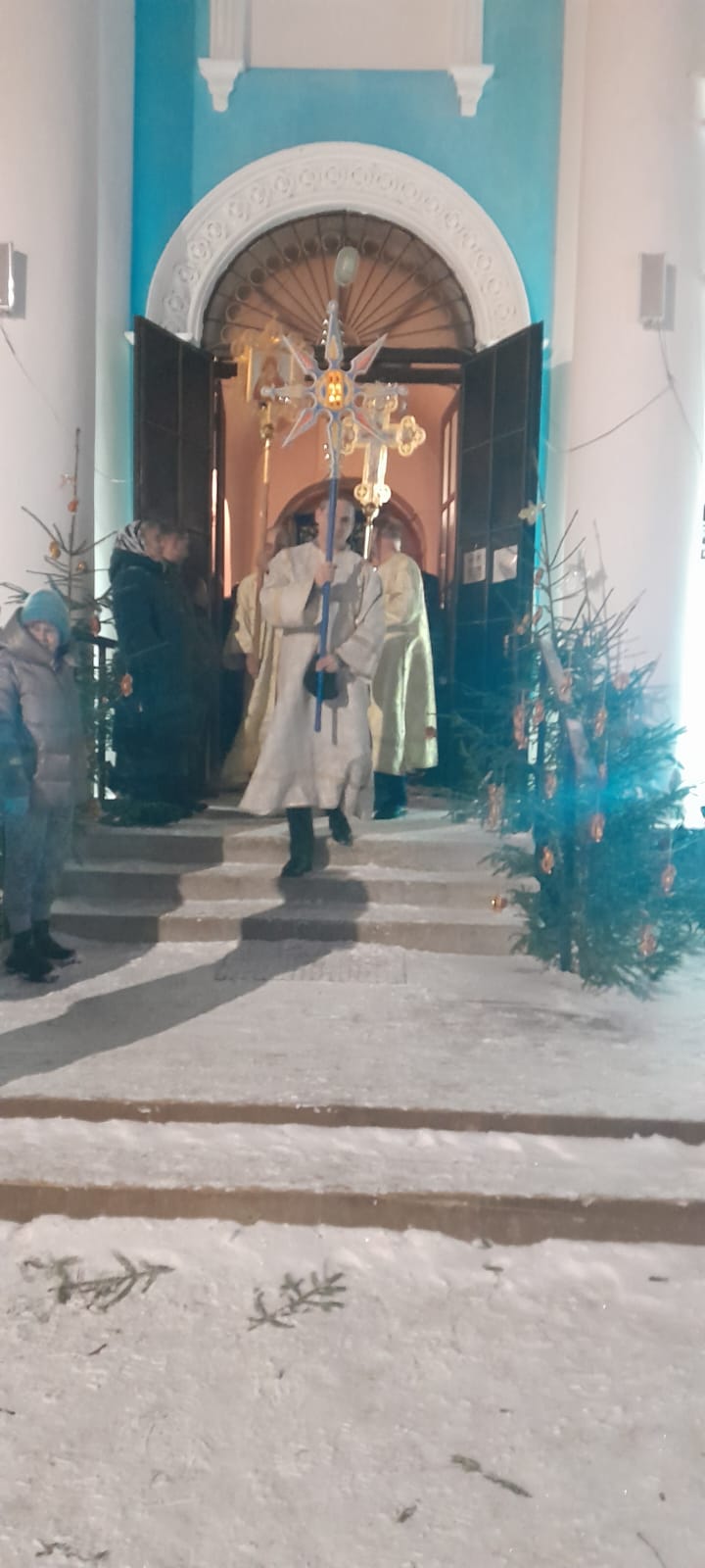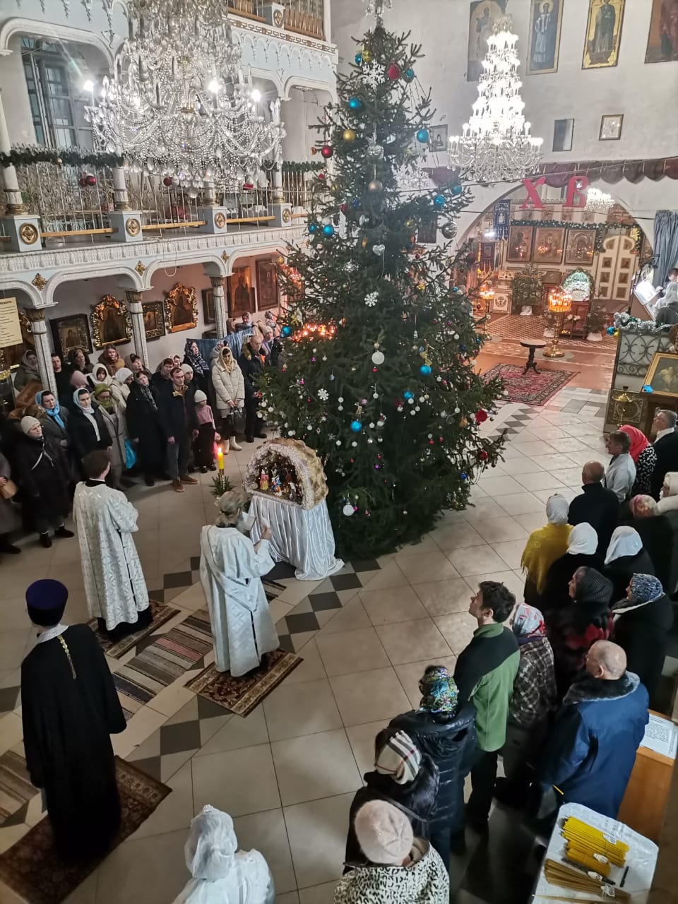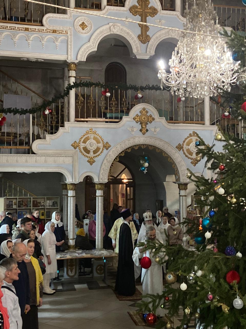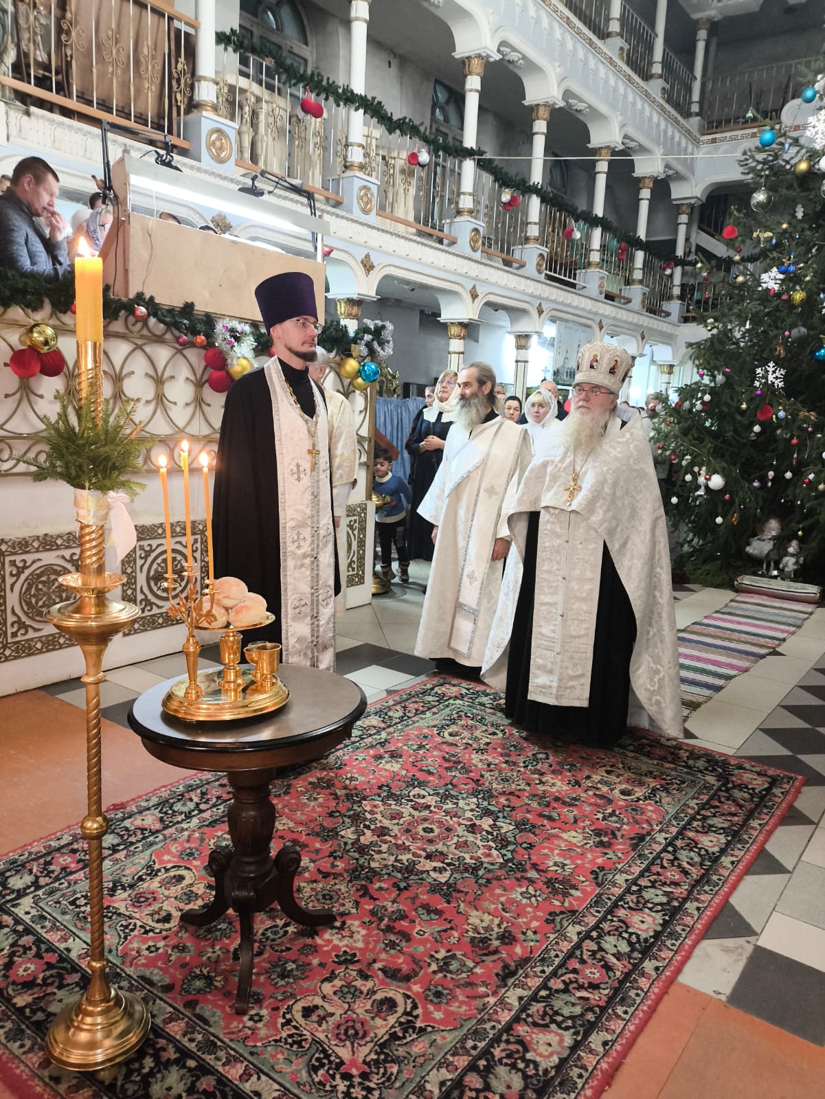 7 января 2025 года, в полночь, в Казанском соборе совершилась праздничная Божественная литургия. В храме к этому часу было особенно торжественно. Радость переполняла сердца людей, пришедших в эту светозарную ночь прославить родившегося Младенца Христа в главный соборный храм города Людиново.