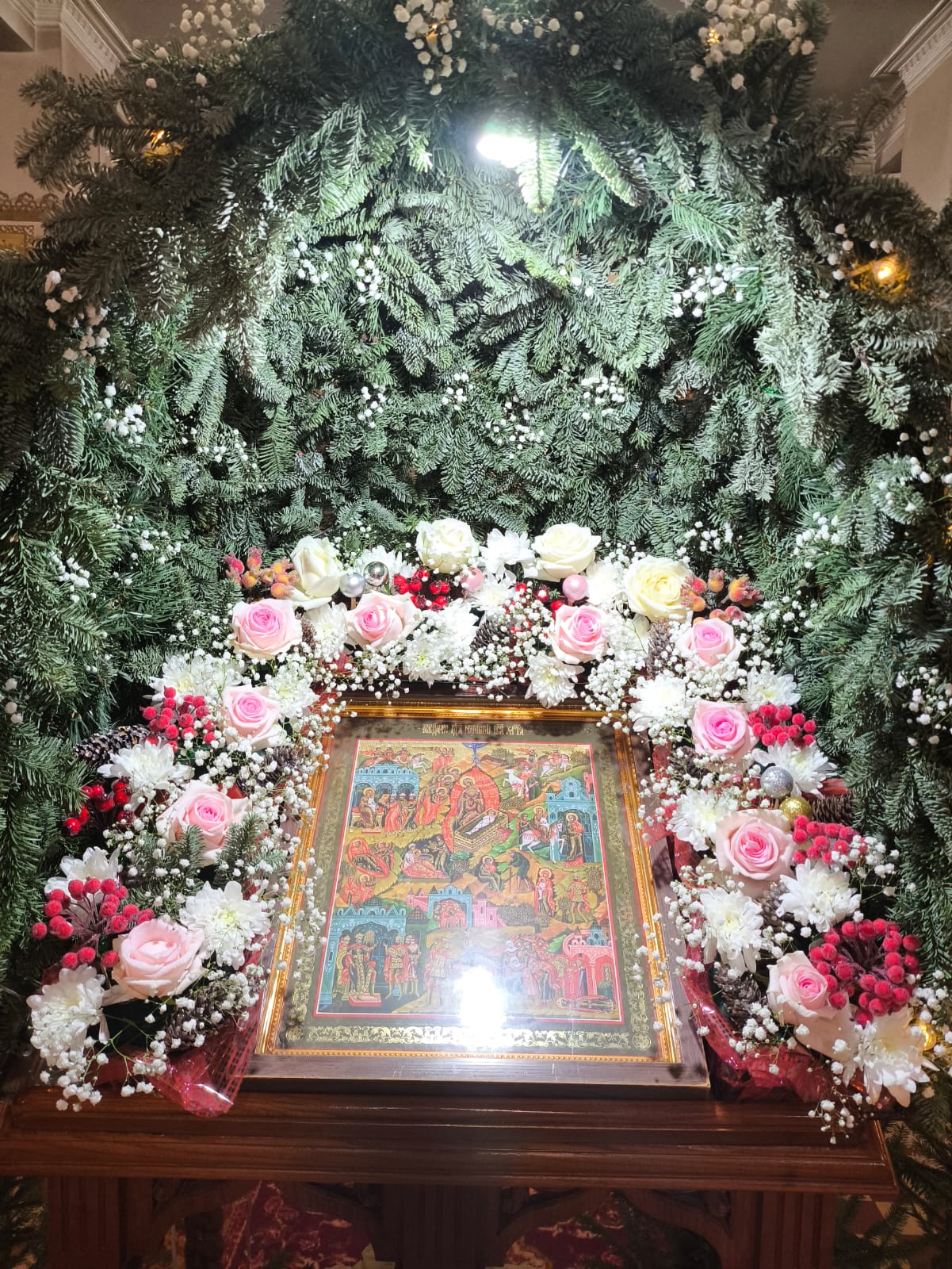 Во время полиелея на утрене духовенство в центре храма пред иконой Рождества пропело величание праздника, после чего было прочитано Евангельское зачало от Матфея, повествующее о рождении в мир Спаса Христа. Затем прихожане храма приложились к праздничному образу и помазались освященным елеем. После вечернего богослужения, по доброй местной традиции Казанского собора, был совершен крестный ход вокруг храма с пением тропаря праздника.