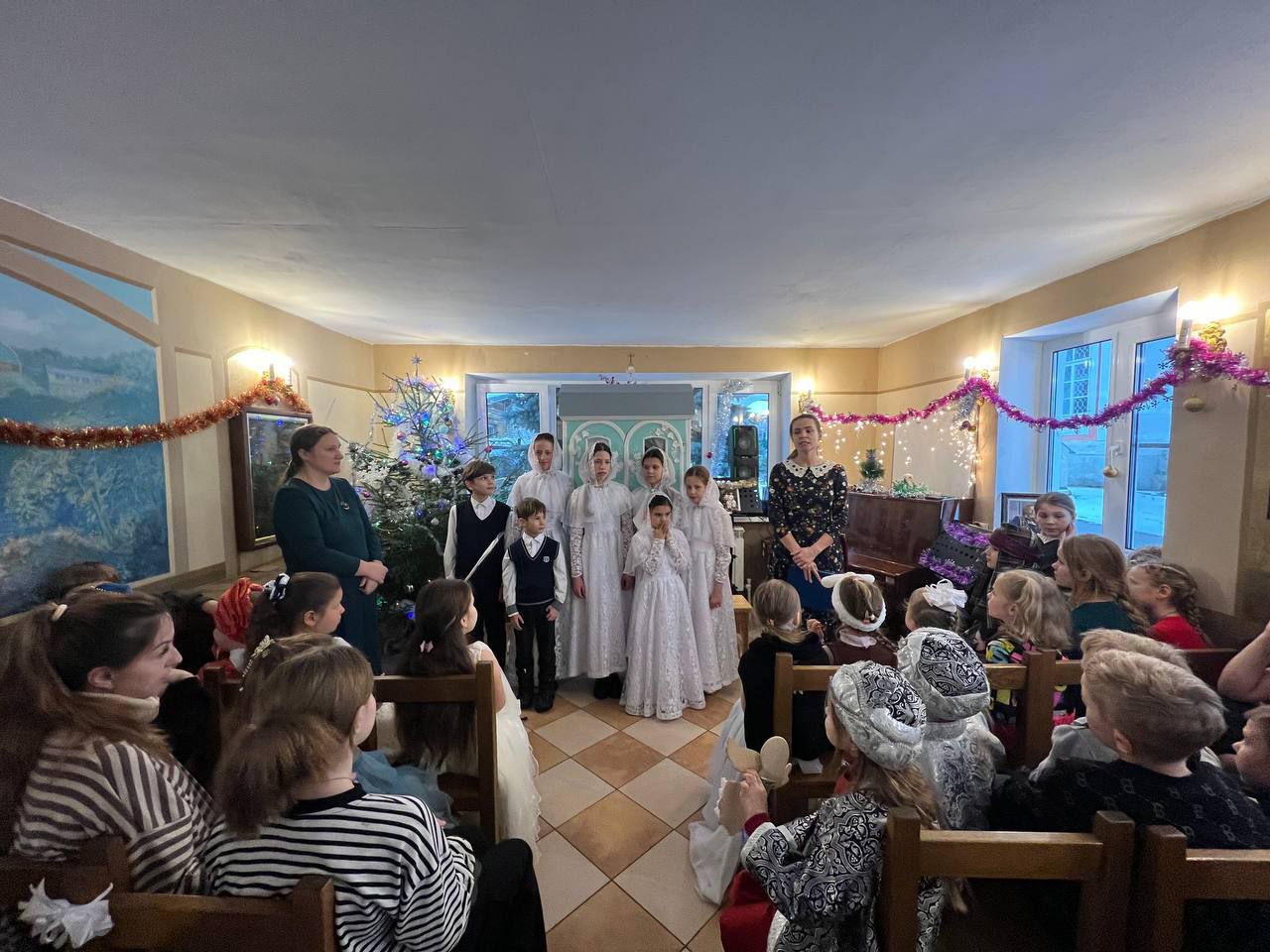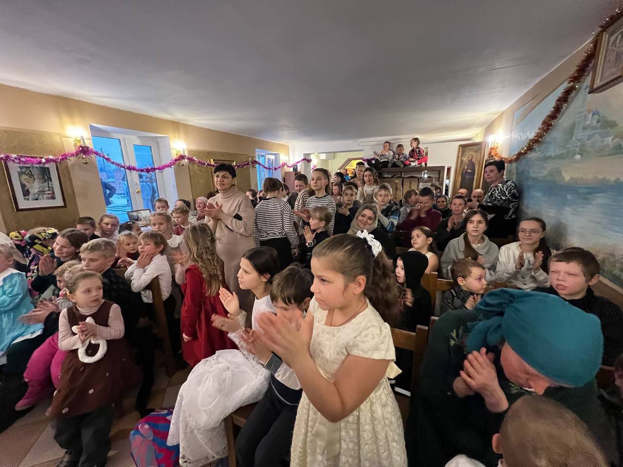 В программе выступлений в трапезной при храме прозвучали Рождественские песни, постановка Кукольного театра, детками были прочитаны стихи, за что они получили сладкие подарки.