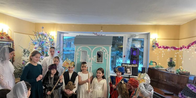 Днём 7 января при храме Преображения Господня села Нижние Прыски Козельского района прошёл уже ставший традиционным детский праздник, совмещённый с гуляниями на улице.