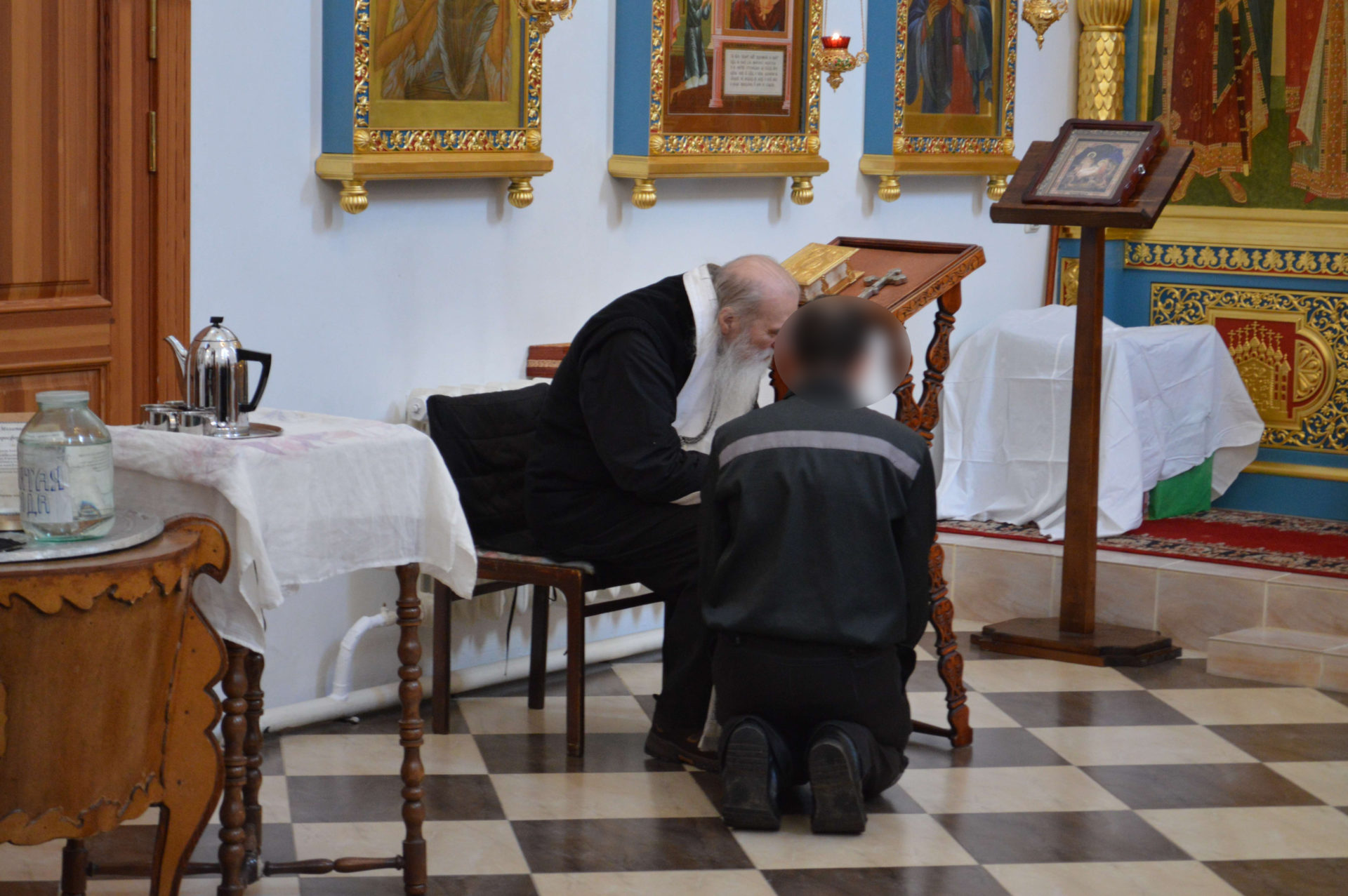 После богослужения иеромонах Силуан провёл беседу с осужденными.