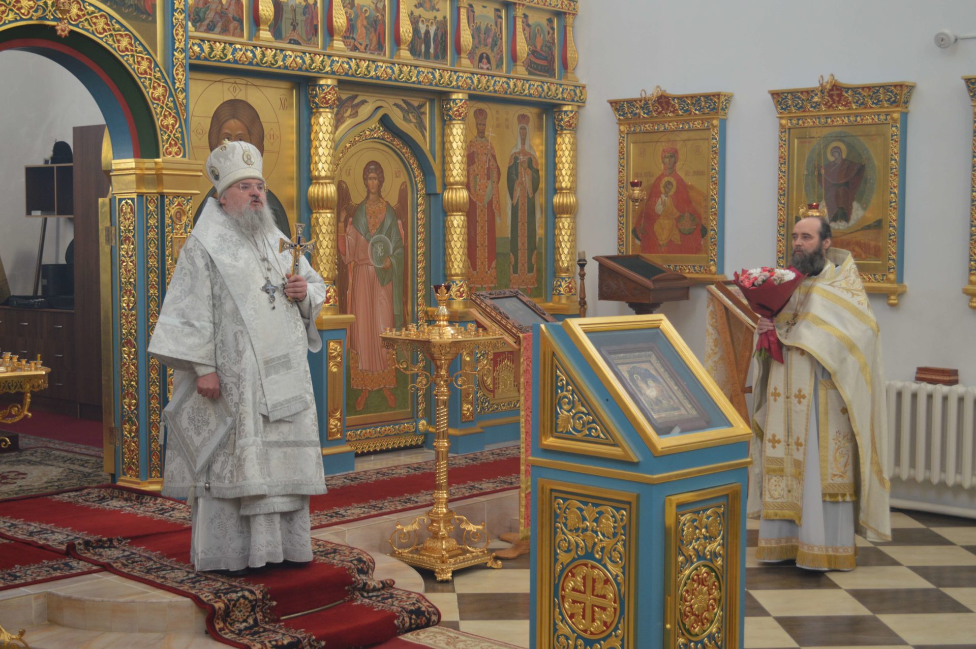 В завершении богослужения владыка поздравил молящихся с праздником и произнес проповедь.