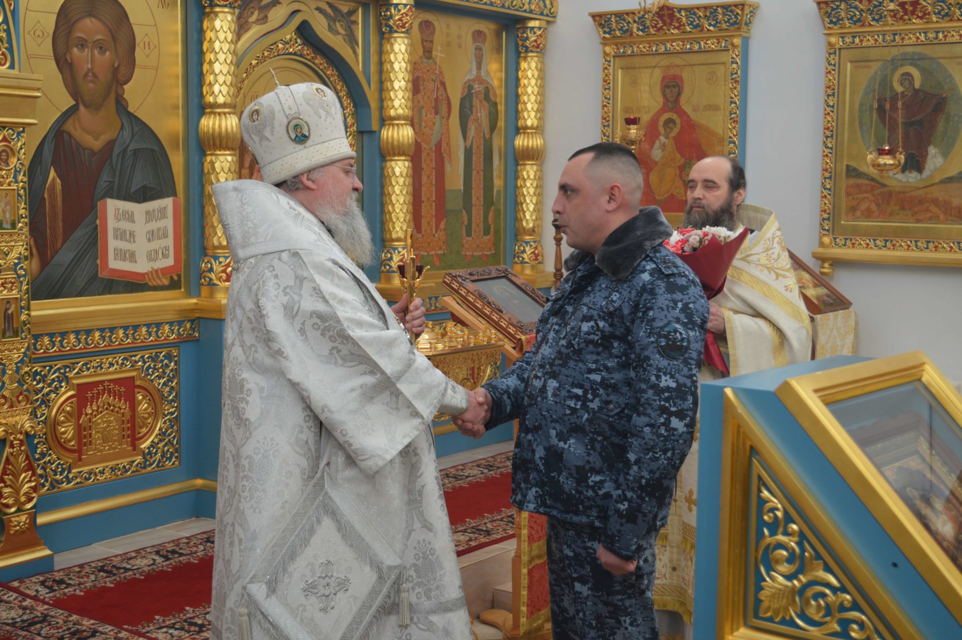 Заместитель начальника УФСИН России по Калужской области полковник внутренней службы Кузмин Александр Николаевич поблагодарил владыку и всех священнослужителей за их вклад в исправлении осужденных и поздравил с Рождеством Христовым.