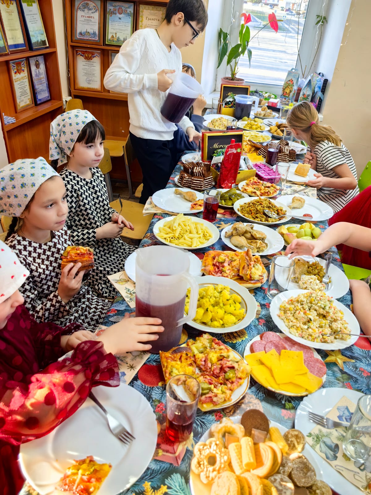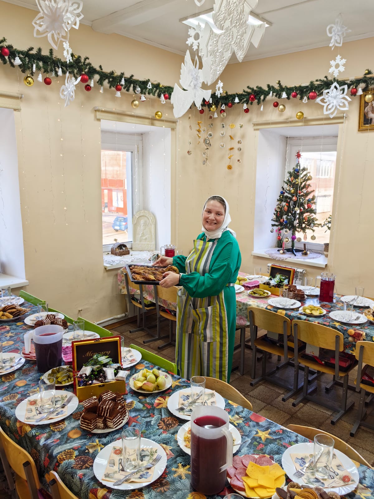 Рождественские Святки, особое, чудесное время, пронизанное теплом, уютом и душевными посиделками. Вот в такой атмосфере праздника ученики и педагоги воскресной школы «Преображение» храма Воскресения Христова села Ульяново отметили день Рождения Христа. 12 января, после воскресного богослужения, в стенах приходской школы деток ждал праздничный обед с подарками и добрыми пожеланиями.  Очень хотелось собраться дружной семьей шумной, веселой и озорной, подарить каждому воспитаннику частичку радости и счастья. Найдя спрятанные подарки, ребята не могли дождаться, чтобы побыстрее их раскрыть. А в подарок каждому из них достался чемоданчик для творчества, набор для экспериментов и коробочка сладостей.