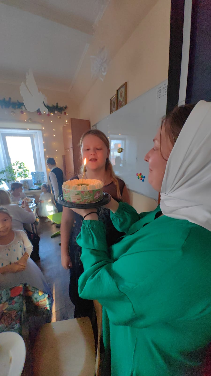 А еще в этот день у одной из воспитанниц был день рождения и конечно с удовольствием все ее поздравили. Ребята по очереди высказали ей свои пожелания и пропели многолетие.