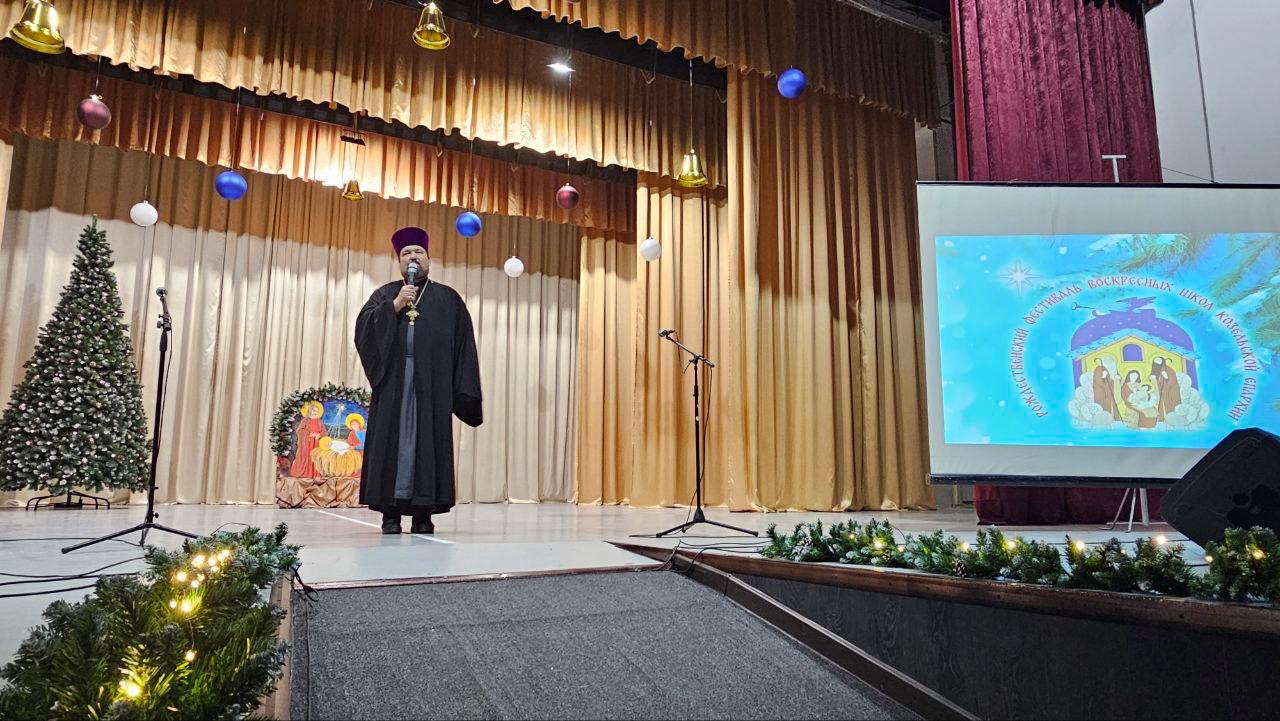 12 января 2025 года в Доме культуры Российской Армии Козельска состоялся Епархиальный Рождественский праздник для жителей и гостей города. Мероприятие началось со слов приветствия секретаря Козельской епархии благочинного Козельского округа протоирея Владимира Бахаева.