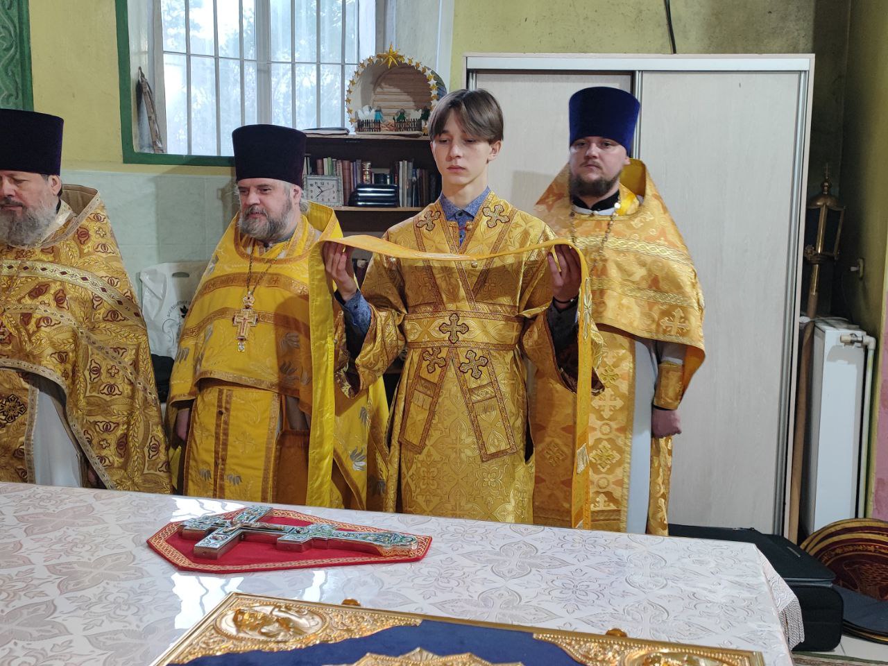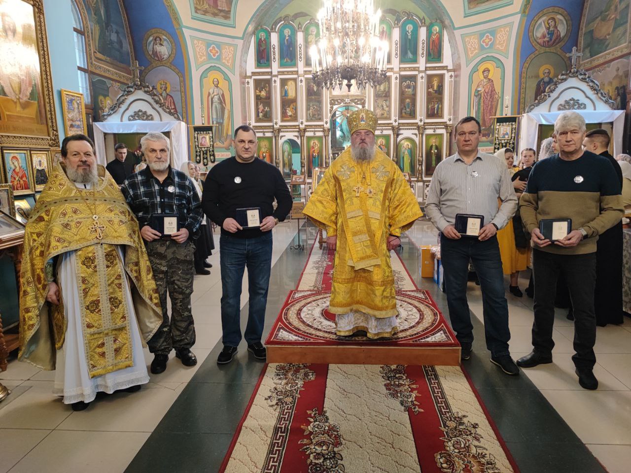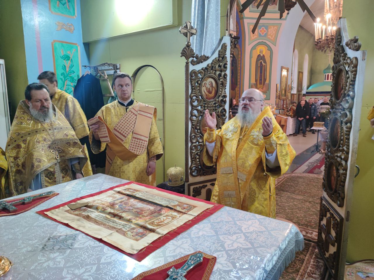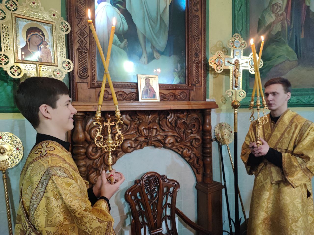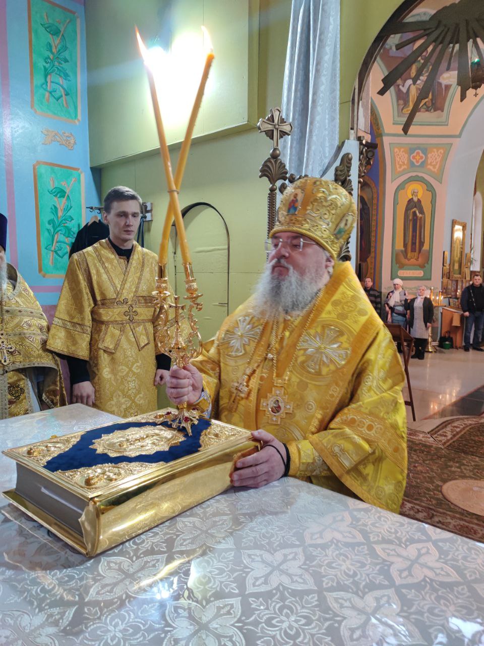 За Божественной литургией Его Преосвященству сослужили: протоиерей Алексий Жиганов – духовник епархии, благочинный округа; настоятель храма протоиерей Василий Биляк; протоиерей Михаил Карпенко, протоиерей Антоний Хатунцев, иерей Иоанн Майоров, диакон Евгений Ковригин и диакон Никита Агарев.