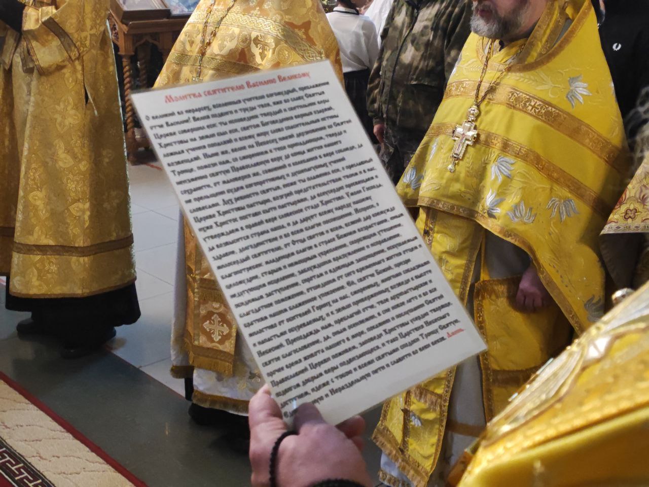 По отпусте литургии священнослужители совершили молитвословия на начало нового 2024 года, начавшегося в этот день по юлианскому календарю, и славление святителю Василию Великому архиепископу Кесарии Каппадокийской, по окончании которого Владыка обратился к богомольцам с проповедью.