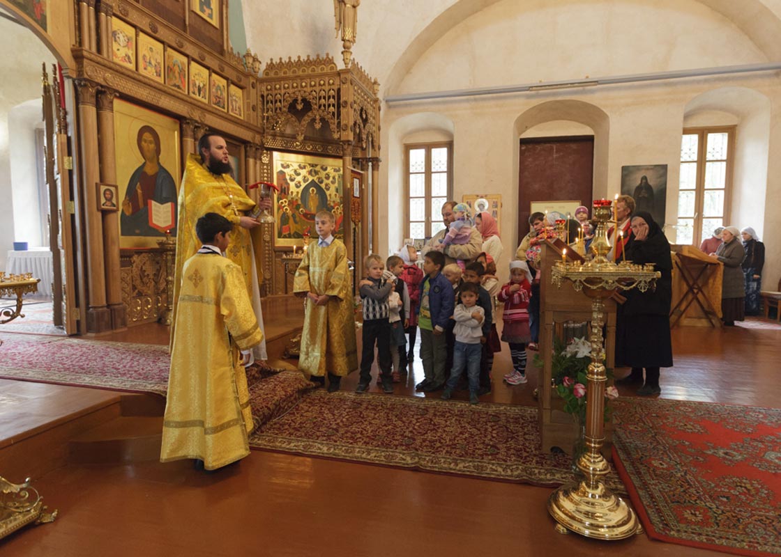 После божественной литургии, за которой многие дети приобщились Святых Христовых Таин, настоятель собора иером.Паисий (Курмаз), в сослужении иерея Елисея Тимофеева, совершил благодарственный молебен Благоверным князьям, а также крестный ход, с активным участием воспитанников школы.
