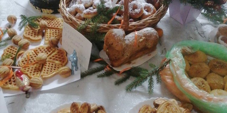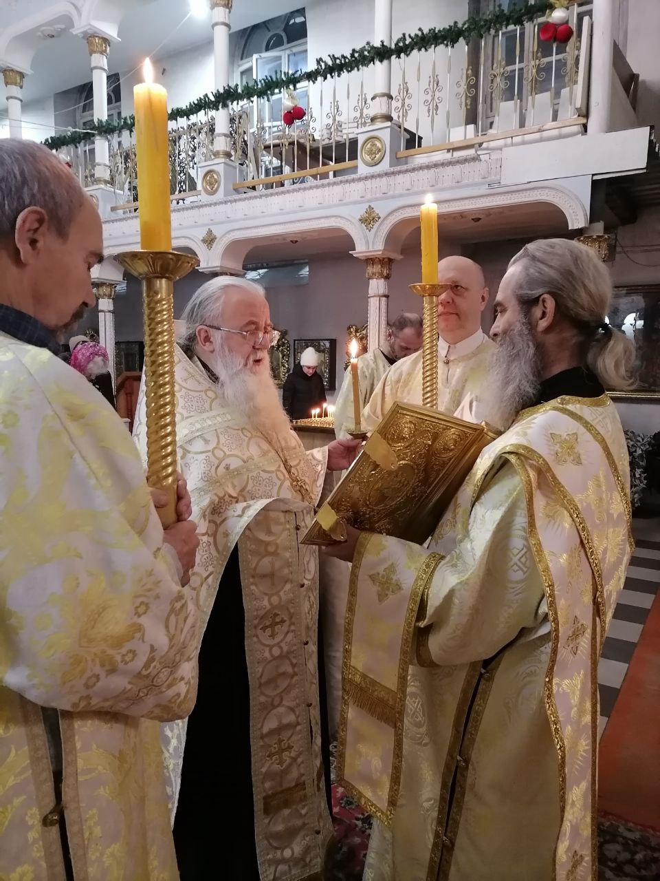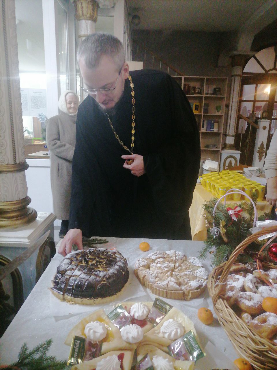 В сам праздник 14 января, после Божественной литургии, которую совершили клирик собора иерей Алексий Сначёв в сослужении диакона Андрея Соколова, состоялся, ставший уже традиционным, приходской конкурс лучшей святочной выпечки. Кондитеры — прихожанки и в этом году проявили необыкновенную активность и щедрость, представив на конкурс свои кондитерские шедевры. Все постарались на славу. Лучшими были признаны кондитерские изделия от матушки Татианы Жигановой – чудо – пончики «От души»; орешки для белочки и печенье — сердечки «С любовью» от Валентины Купрюхиной; блинчики «Угощайся» и Рождественский агнец от Антонины Ребровой; эклеры «Вкусняшки» от Инны Аксёновой. Все умелицы – кондитеры были удостоены похвалы священнослужителей и прихожан, которые с удовольствием пробовали их замечательные кондитерские шедевры. За труды по благословению настоятеля всем были вручены сладости и сувениры.