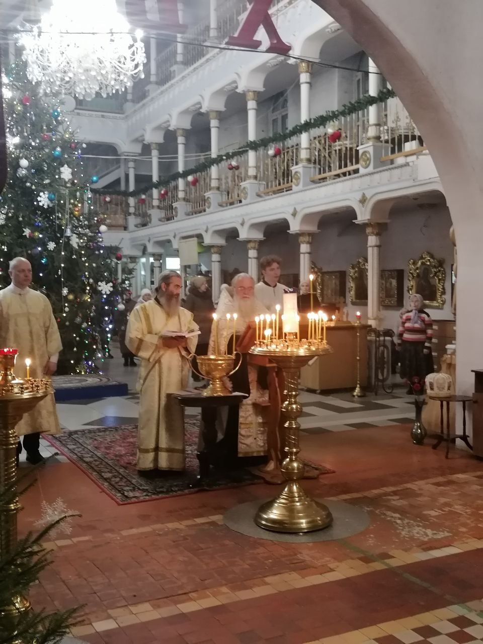 14 января — Обрезание Господне и память святителя Василия Великого. Накануне 13 января 2025 года в Казанском соборе города Людиново было совершено всенощное бдение и молебен на Новолетие с каноном, которое совершили настоятель собора протоиерей Алексий Жиганов в сослужении диаконов Андрея Соколова и Никиты Агарёва.