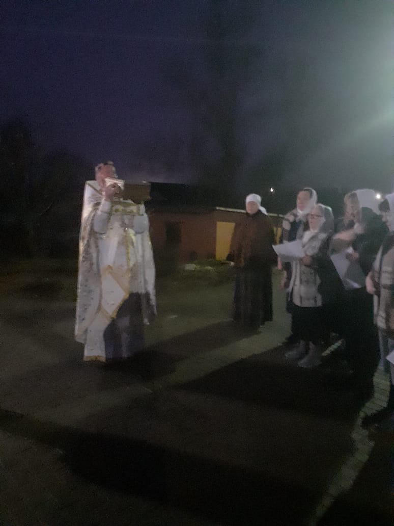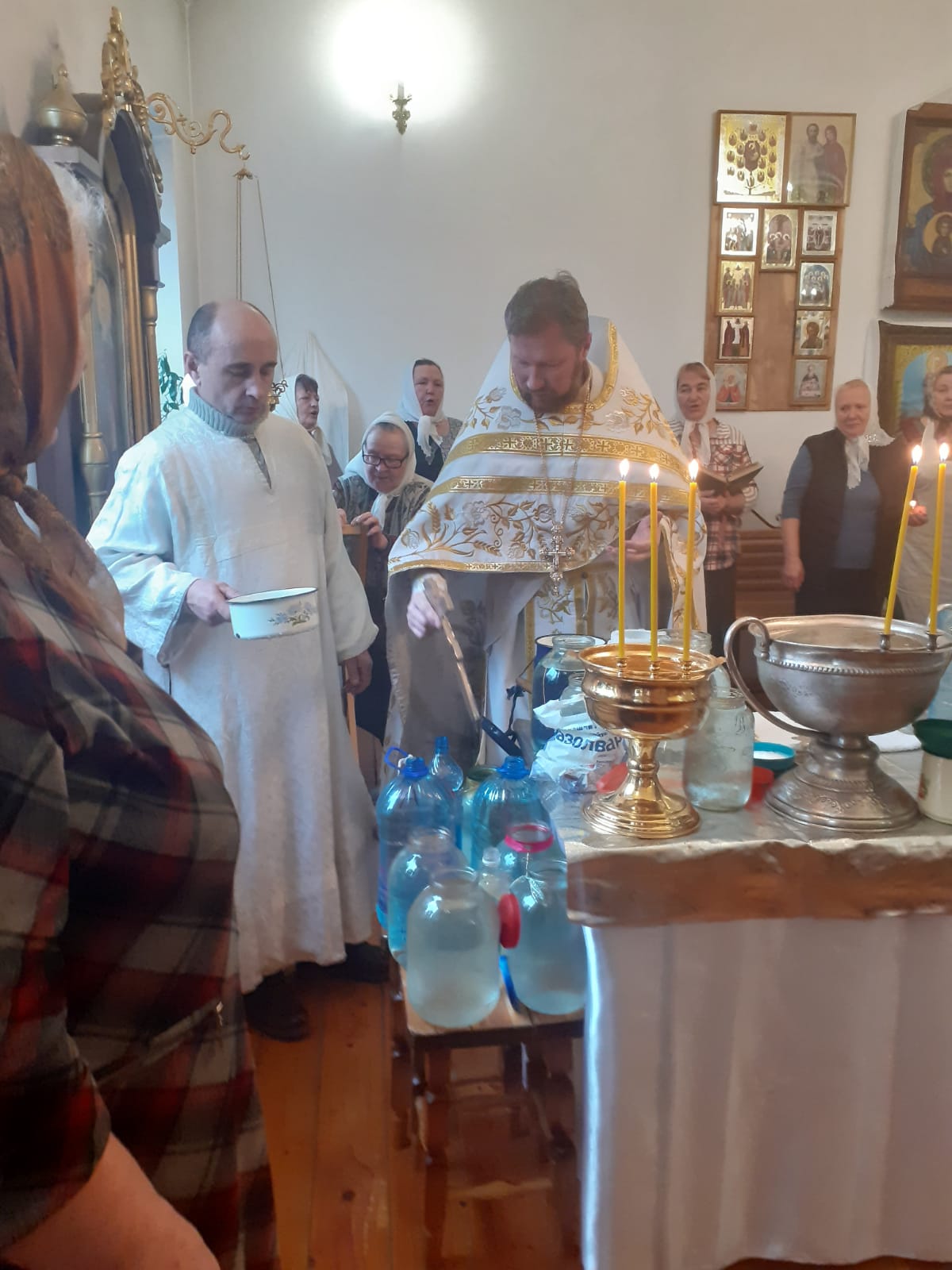 По окончании службы было совершено Великое освящение воды. Затем отец Александр обратился к прихожанам с проповедью.