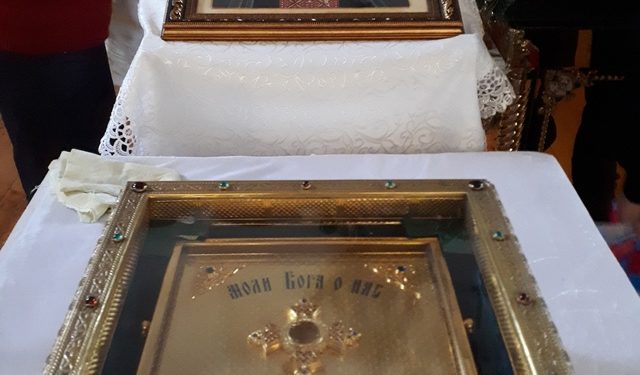 Встретил святыню и совершил Божественную литургию благочинный 4-го округа Козельской епархии настоятель храма протоиерей Александр Карпов. На литургии были вознесены особые прошения и молитва о Святой Руси. По благословению Святейшего Патриарха Московского и всея Руси Кирилла эта сугубая молитва совершается во всех храмах Русской Православной Церкви за каждым богослужением.