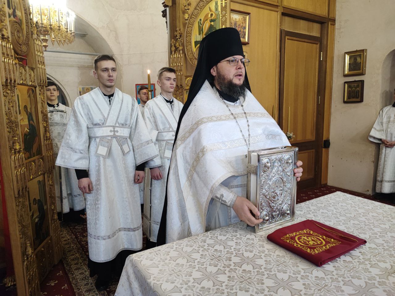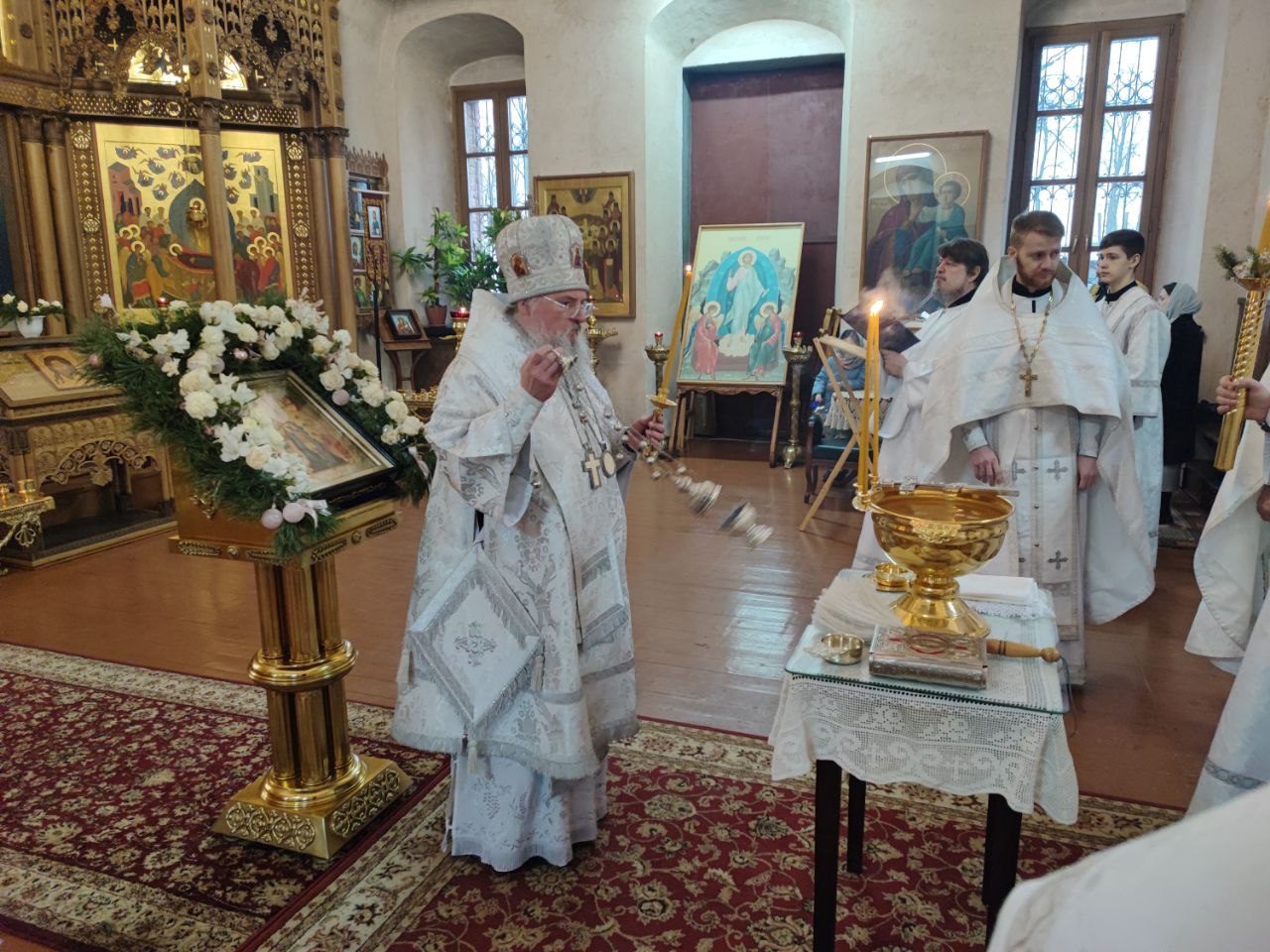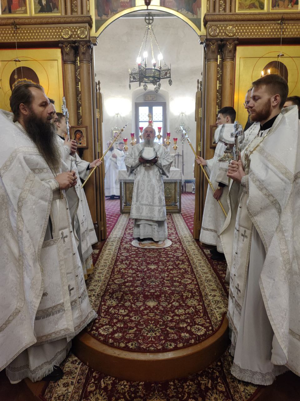Преосвященному владыке сослужили: иеромонах Паисий (Курмаз) настоятель собора, протоиерей Антоний Хатунцев, иерей Елисей Тимофеев, иерей Евгений Чуркин, диакон Евгений Васильев и диакон Димитрий Лутков.