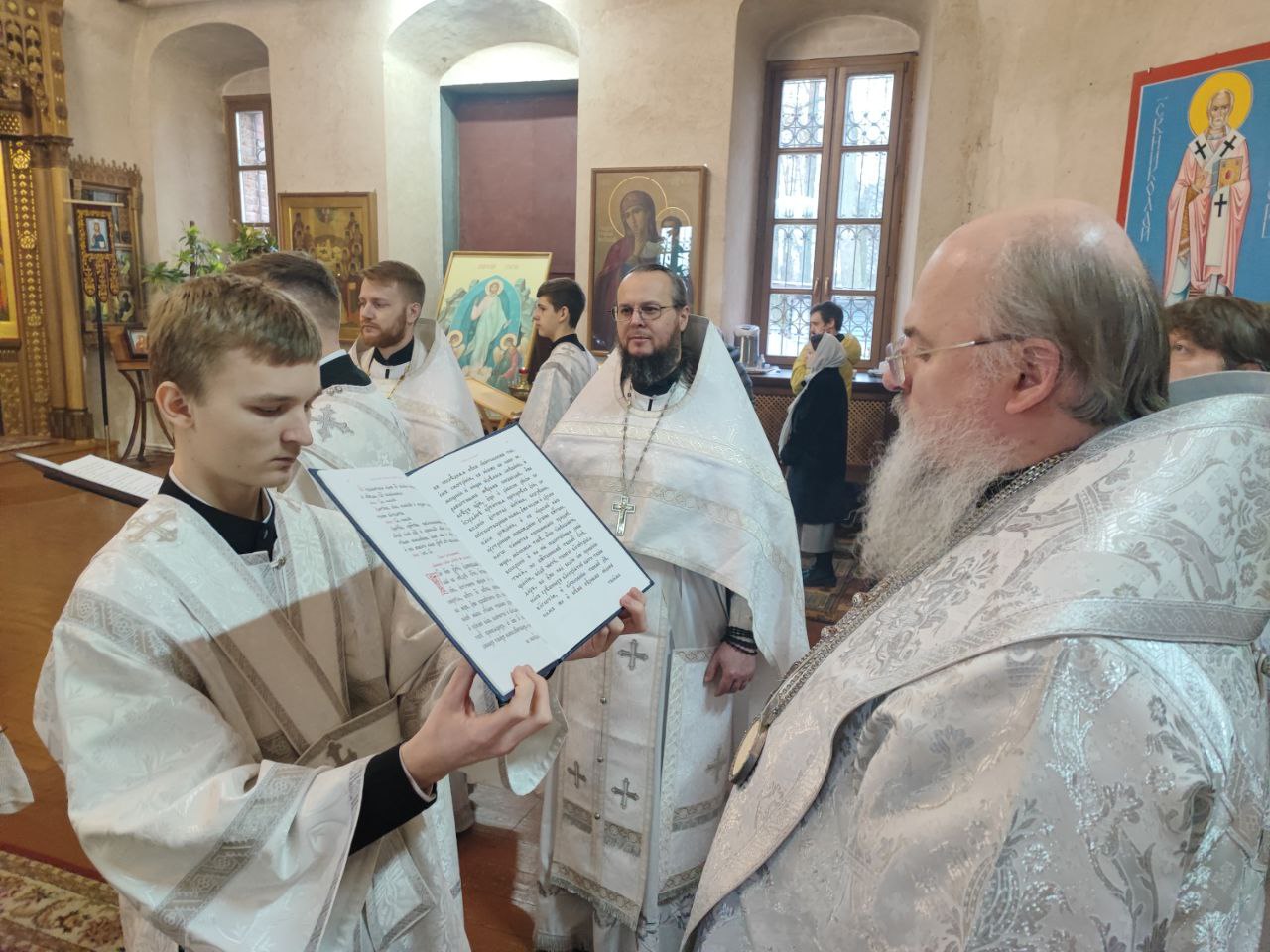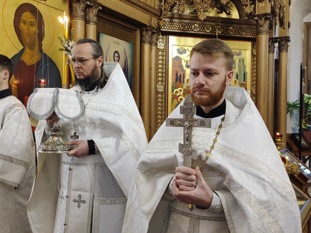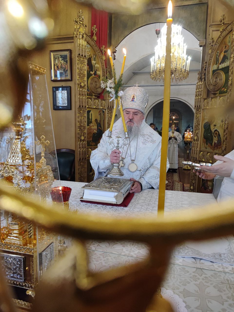 Преосвященному владыке сослужили: иеромонах Паисий (Курмаз) настоятель собора, протоиерей Антоний Хатунцев, иерей Елисей Тимофеев, иерей Евгений Чуркин, диакон Евгений Васильев и диакон Димитрий Лутков.