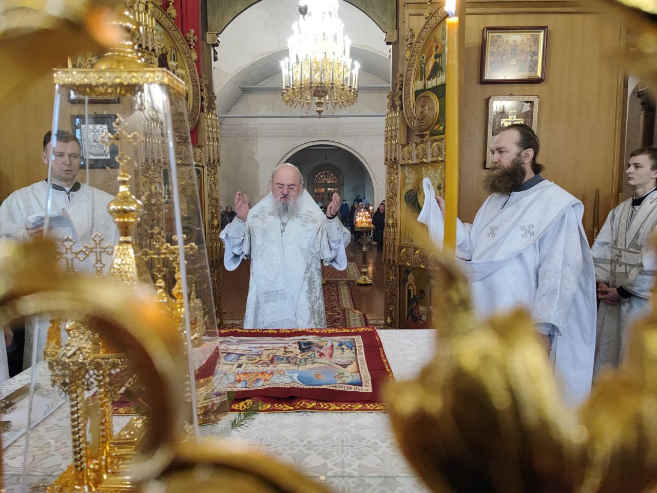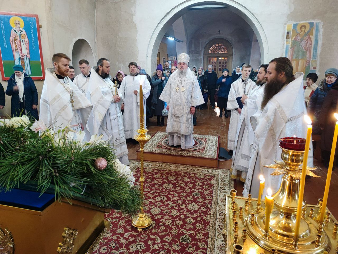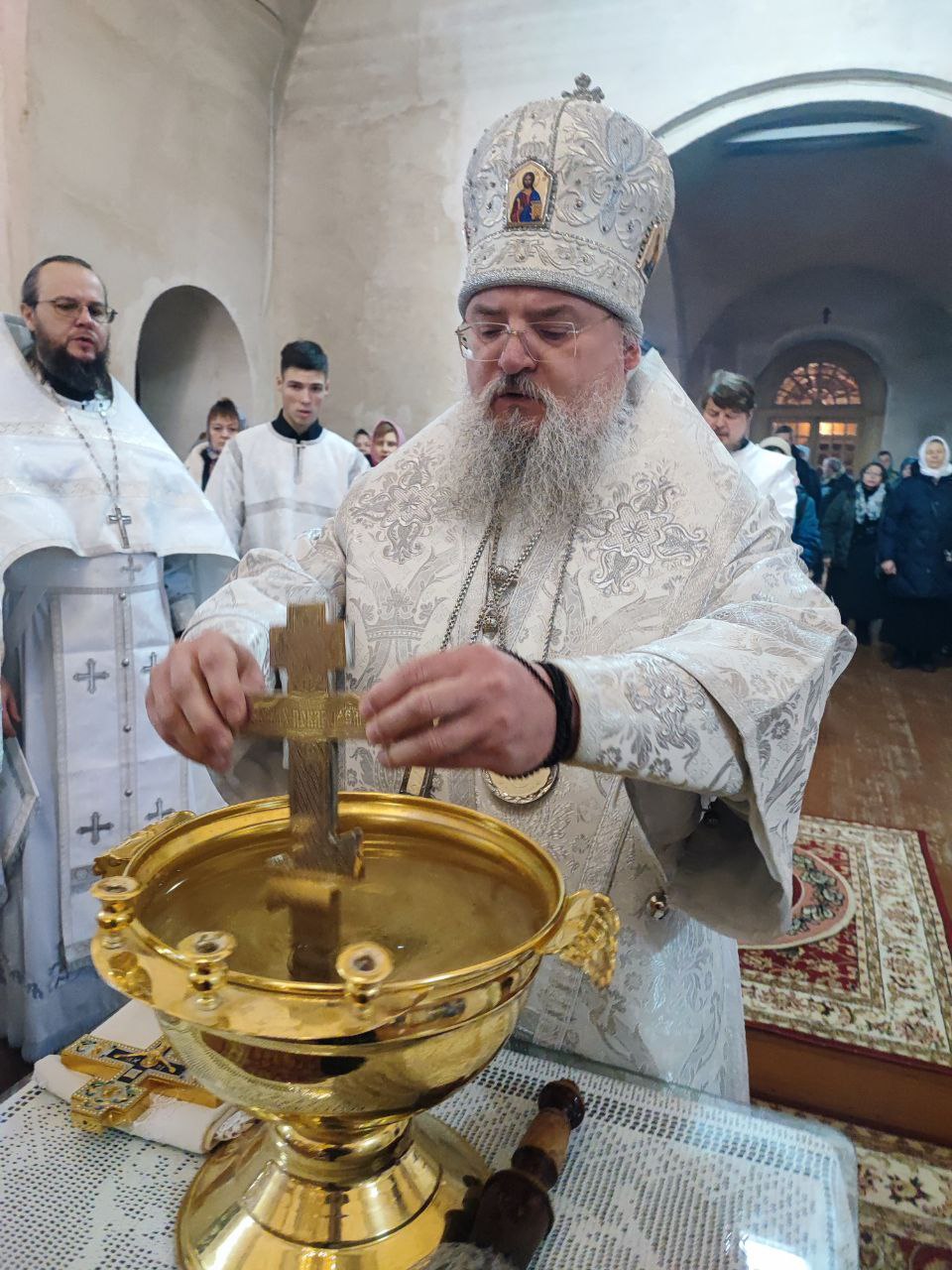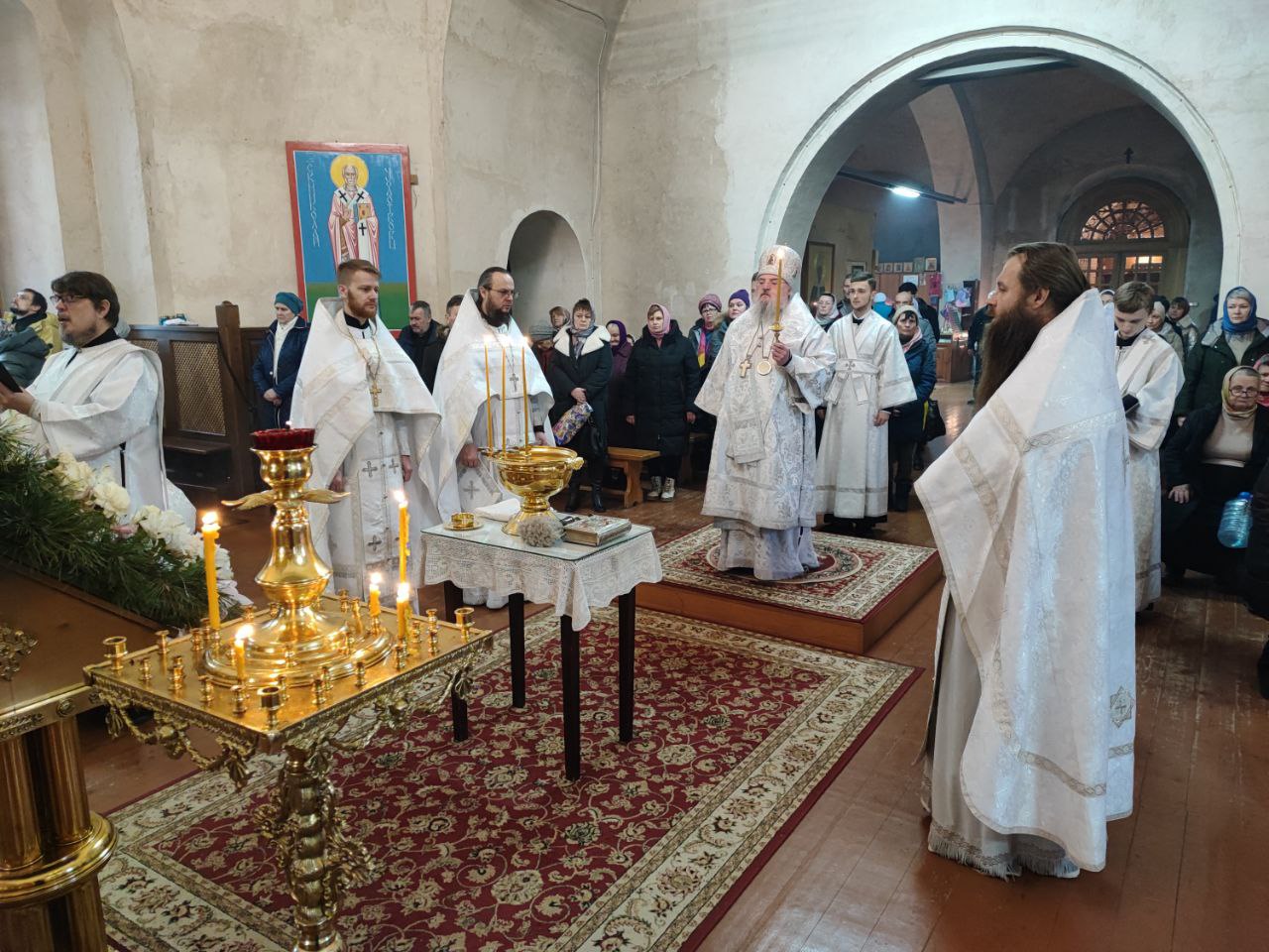 18 января. Епископ Козельский и Людиновский Никита совершил в Успенском кафедральном соборе города Козельска Божественную литургию святителя Иоанна Златоустого в соединении с великой вечерней Богоявления и чин Великого освящения воды.