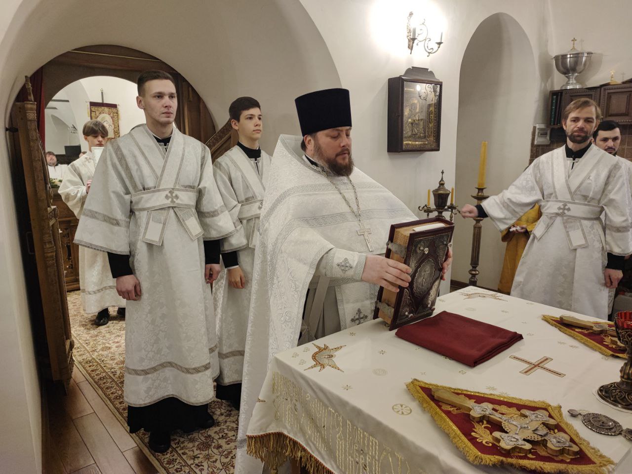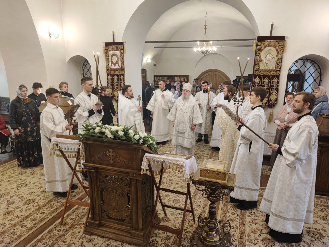 Архипастырю сослужили: протоиерей Антоний Хатунцев, иерей Дионисий Капустин – настоятель храма, диакон Евгений Ковригин и диакон Александр Карпенко.