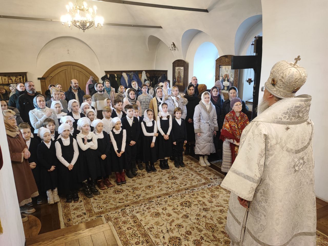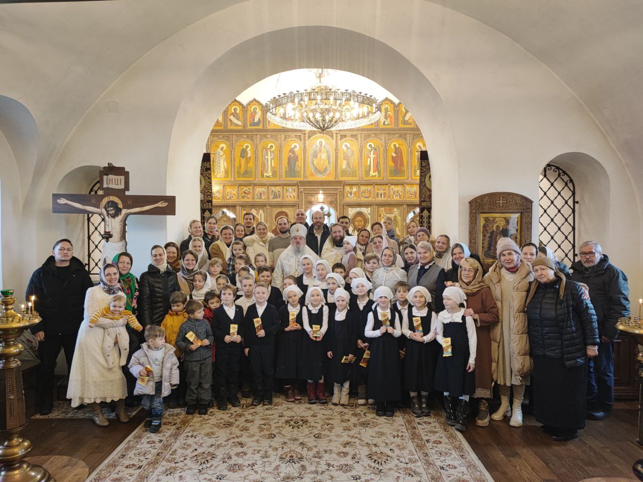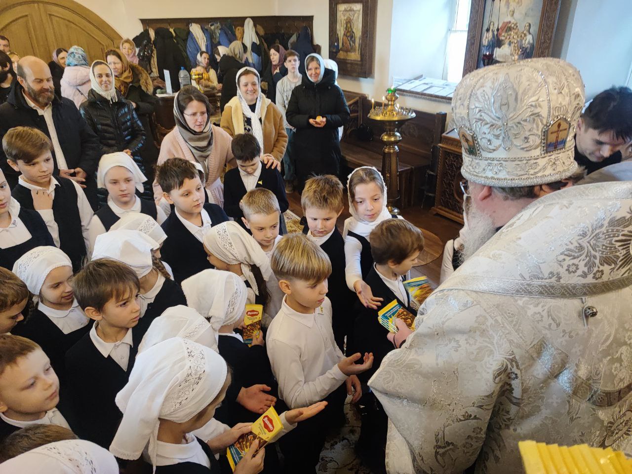 Священнослужителей и прихожан храма поздравили дети – учащиеся Русской классической школы. Владыка поблагодарил детишек за прекрасное выступление и вручил каждому сладкий подарок.