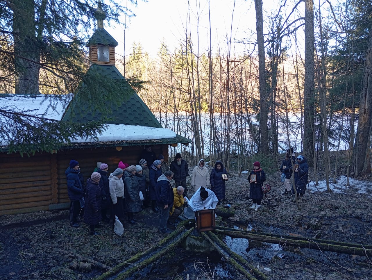 В навечерие праздника Богоявления в храме в честь иконы Божией Матери «Живоносный Источник» города Людиново была совершена Божественная литургия с Великой вечерней, по окончании которой состоялось Великое освящение воды. Вечером, настоятель храма «Живоносный Источник» иерей Иоанн Майоров отслужил всенощное бдение. В сам день Крещения Господня, утром, была совершена литургия святителя Василия Великого, после которой также было совершено Великое освящение воды. Затем торжественным Крестным ходом прихожане прошли к источнику «3 ручья», где иерей Иоанн Майоров освятил воду и купель для купания чином Великого освящения. В эти два дня все желающие могли набрать освященной воды в храме «Живоносный Источник».