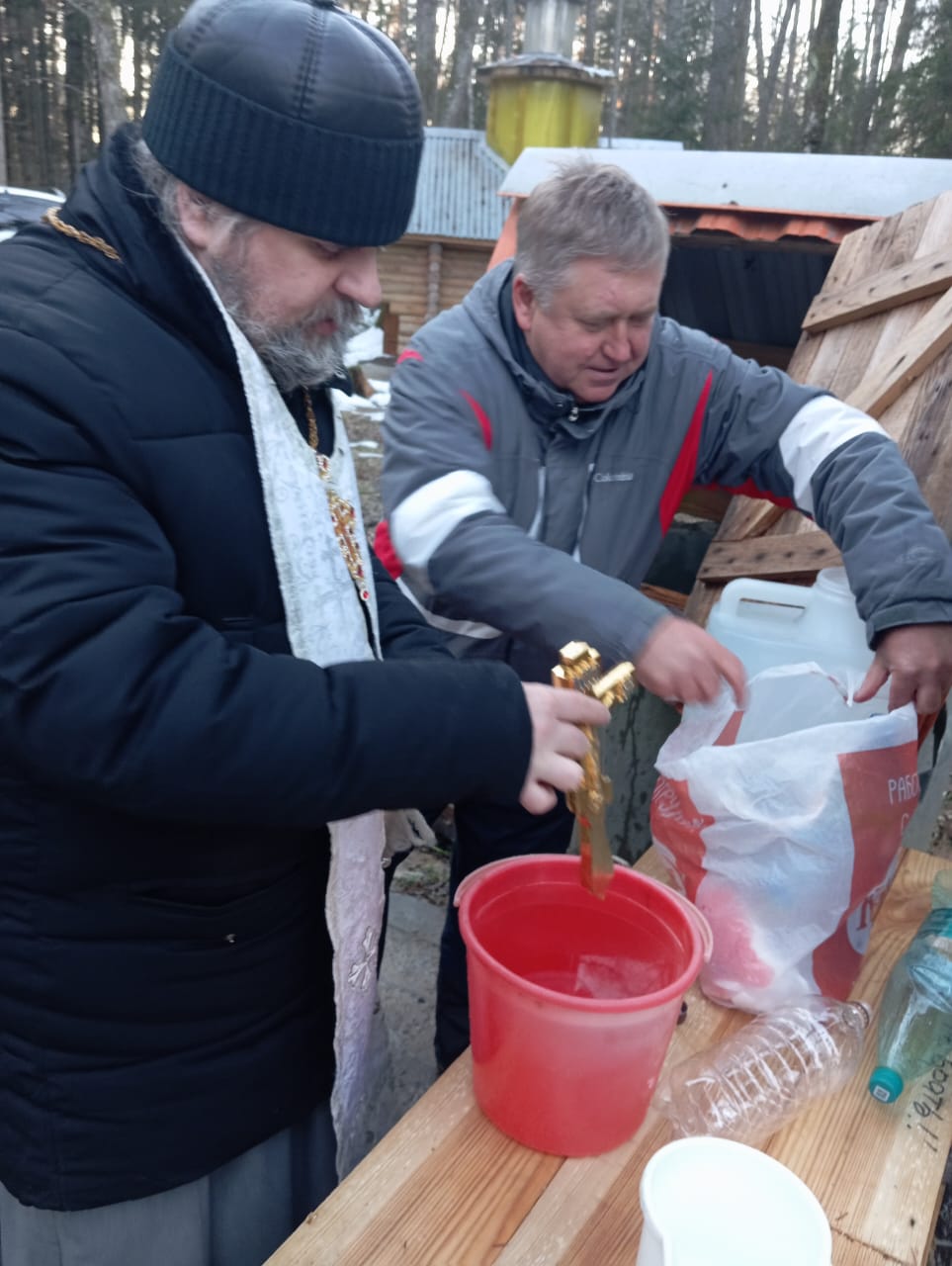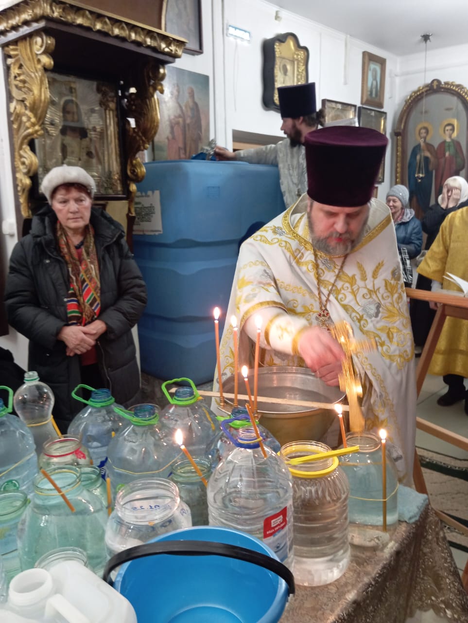 По окончании Божественной Литургии отец Михаил совершил чин Великого освящения воды. Затем батюшка поздравил молящихся с праздником Богоявления Господня и рассказал об истории праздника и его духовном смысле.