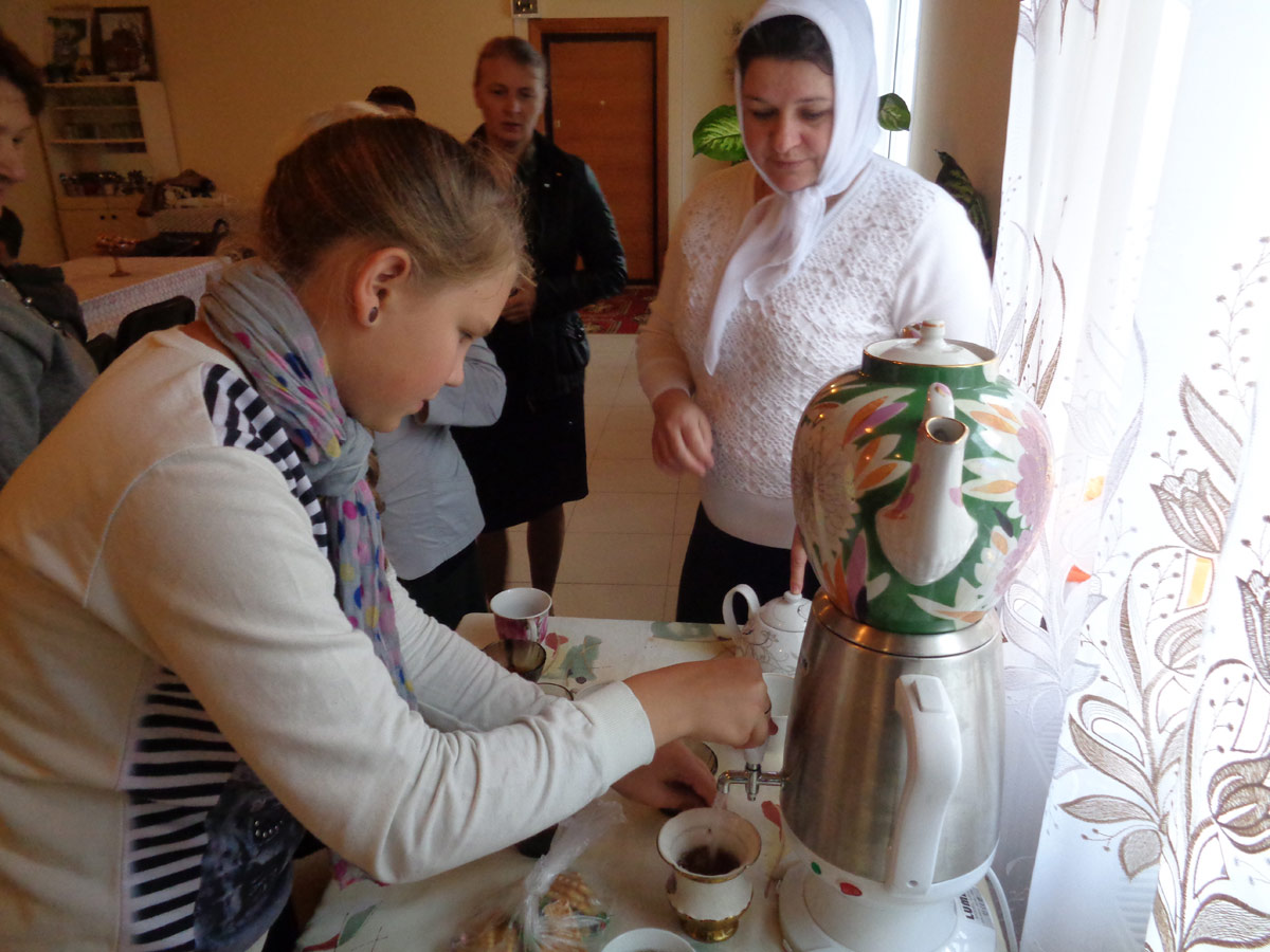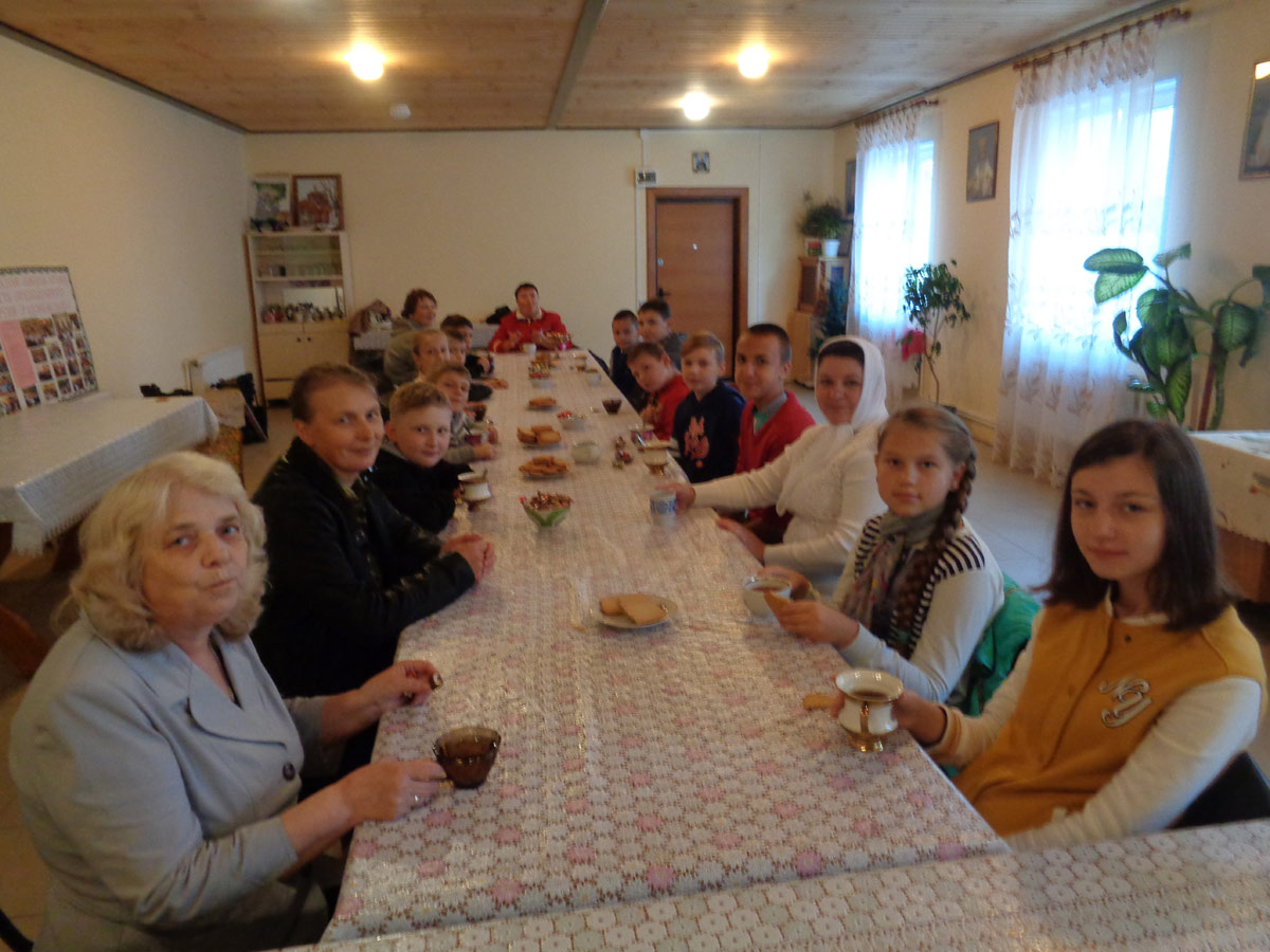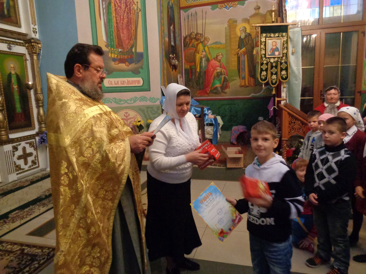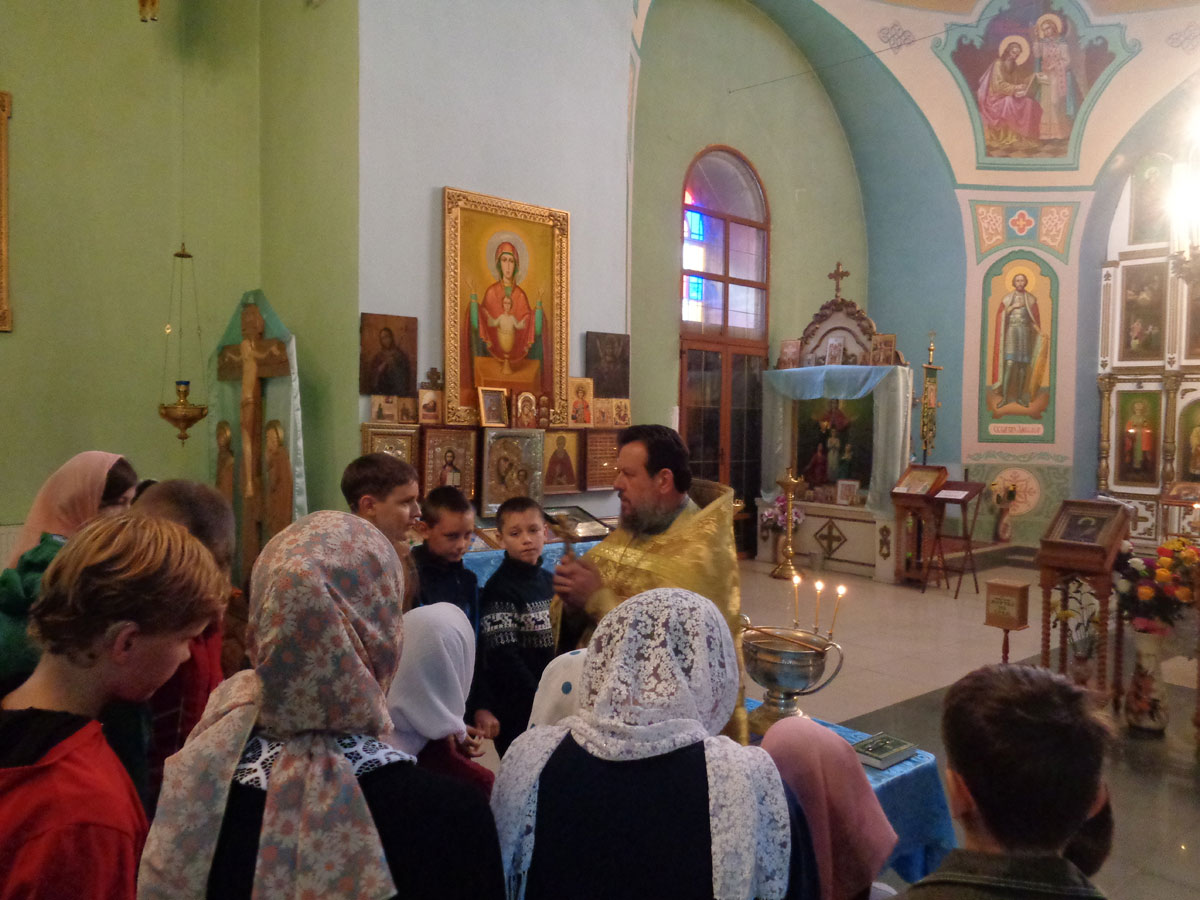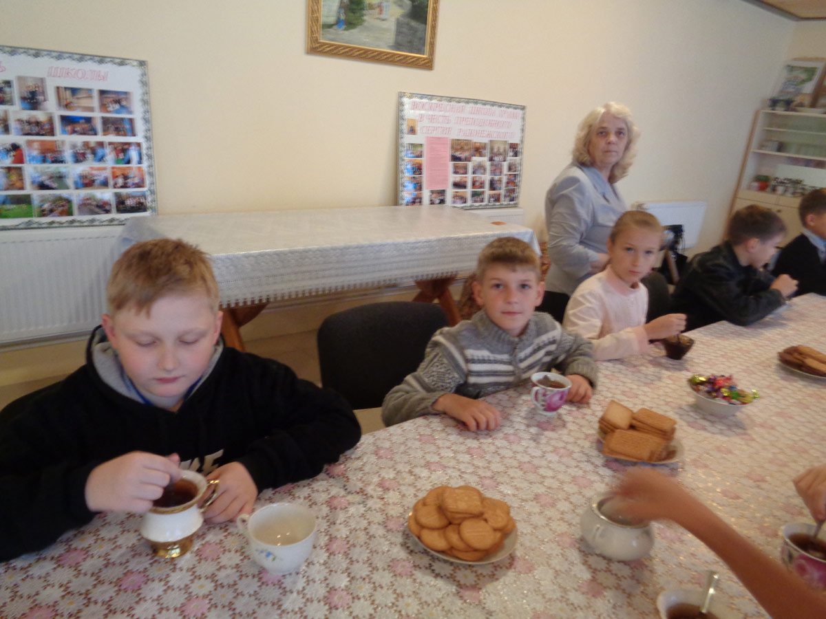 По окончании молебна о. Василий окропил всех святой водой и обратился с назидательным словом к учащимся, которые впервые поступили или продолжают обучение в Воскресной школе и пожелал, чтобы, новый учебных год прошёл для всех с духовной пользой и возрастанием в православной вере. Затем, батюшка вручил грамоты и сладкие подарки детям. После урока состоялось традиционное чаепитие.