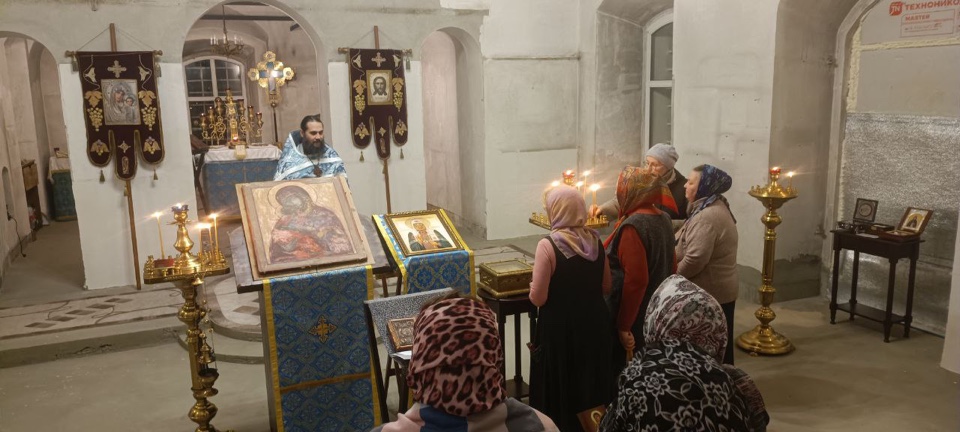 Ковчег с частицей святых мощей святителя и икона святого патриарха Тихона находился на Архиерейском подворье при храме в честь Владимирской иконы Божией Матери с 23 по 24 января.