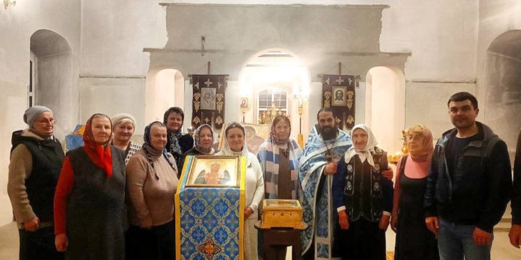 По прибытии настоятель храма иерей Максим Изопов с прихожанами пропели молебен и акафист Божией Матери Владимирской, по окончании молебна совершили величание святителю Тихону с вознесением молитвы святому.