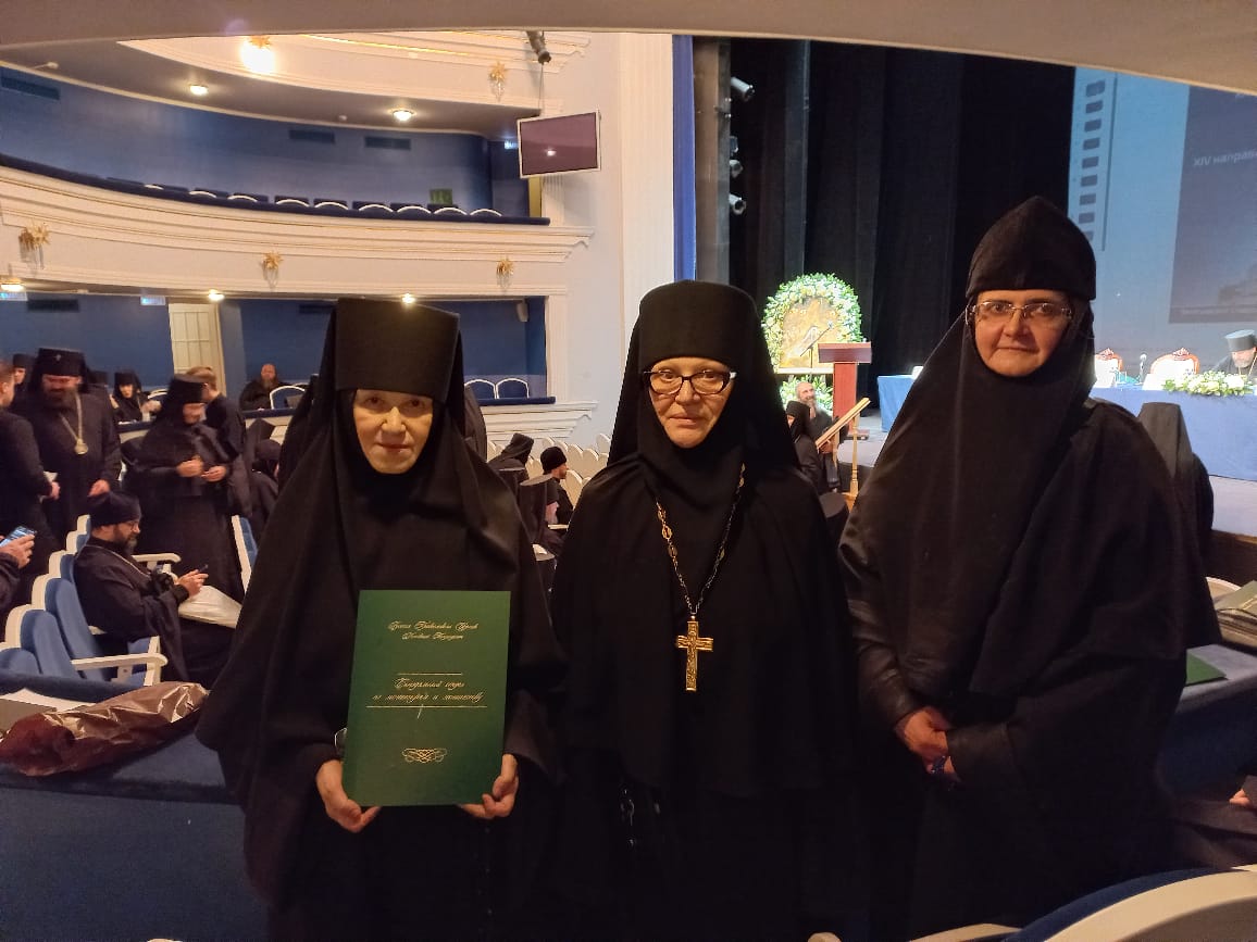 Настоятельница Свято-Успенской Николаевской обители игумения Анна (Морозова) рассказала собранию о том, как живет монастырь, основанный схиархимандритом Зосимой (Сокуром) в селе Никольское Донецкой области. С марта 2022 года до сентября 2024 обитель находилась на линии боевого соприкосновения до тех пор, пока российскими войсками не была отодвинута линия фронта. За это время монастырь регулярно подвергался обстрелам противника, были разрушены все помещения, разбиты коммуникации. Насельники остались в монастыре ради совершения богослужений, чтобы на первой линии фронта, в месте смерти и скорби, не угасала молитва. В июле 2024 года противник заминировал магнитными минами все дороги, ведущие к монастырю, на несколько месяцев обитель оказалась в блокаде, лишившись возможности получать хлеб и топливо. Однако, преодолевая внешние лишения, а вместе с тем и страх насилия, смерти, потери близких, насельники продолжали вести монашескую жизнь в разрушенной обители. Монастырь стал местом, где многие военные находили поддержку и утешение, ведь они могли в любое время прийти в храм, чтобы помолиться о своих боевых товарищах, принять таинство Крещения, исповедаться и причаститься Святых Христовых Таин перед тем, как идти в бой, который мог стать последним в их жизни. В завершение своего выступления матушка выразила надежду на возрождение монастыря и воссоединение всех насельников, которые были вынуждены эвакуироваться. Монахини верят, что с Божией помощью обитель будет восстановлена, и в ней снова воцарятся мир и покой, и именно эта вера, по словам матушки, дает силы жить и молиться, несмотря на все испытания.