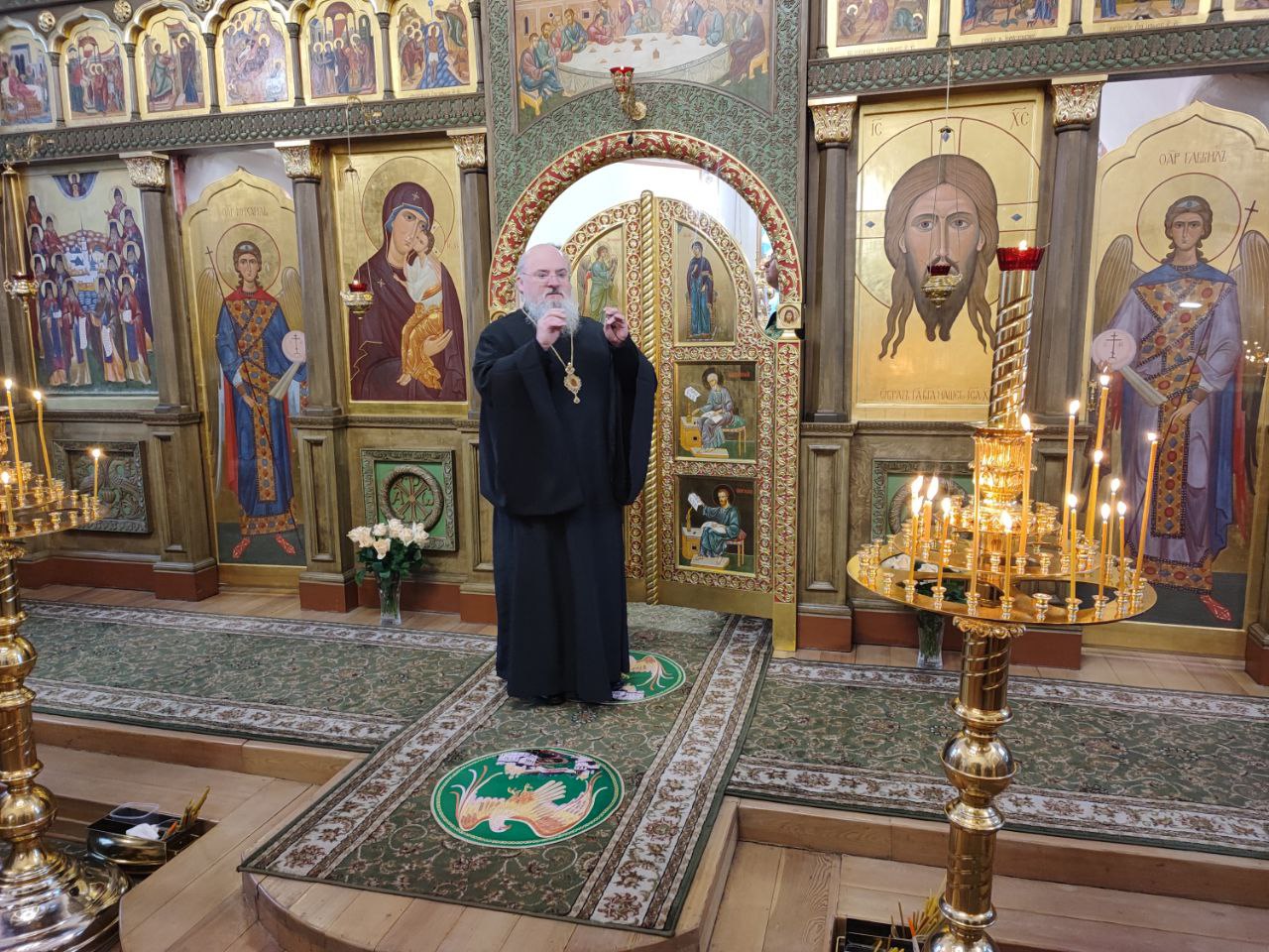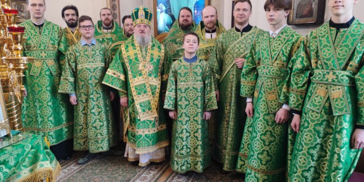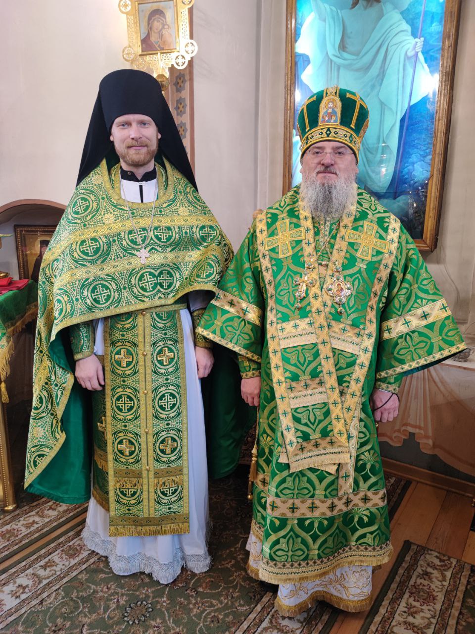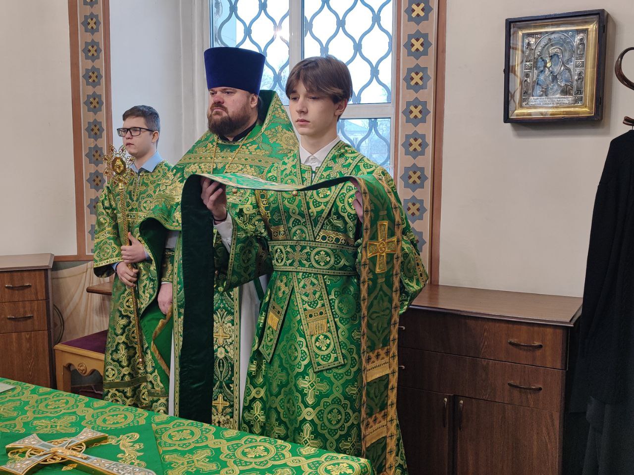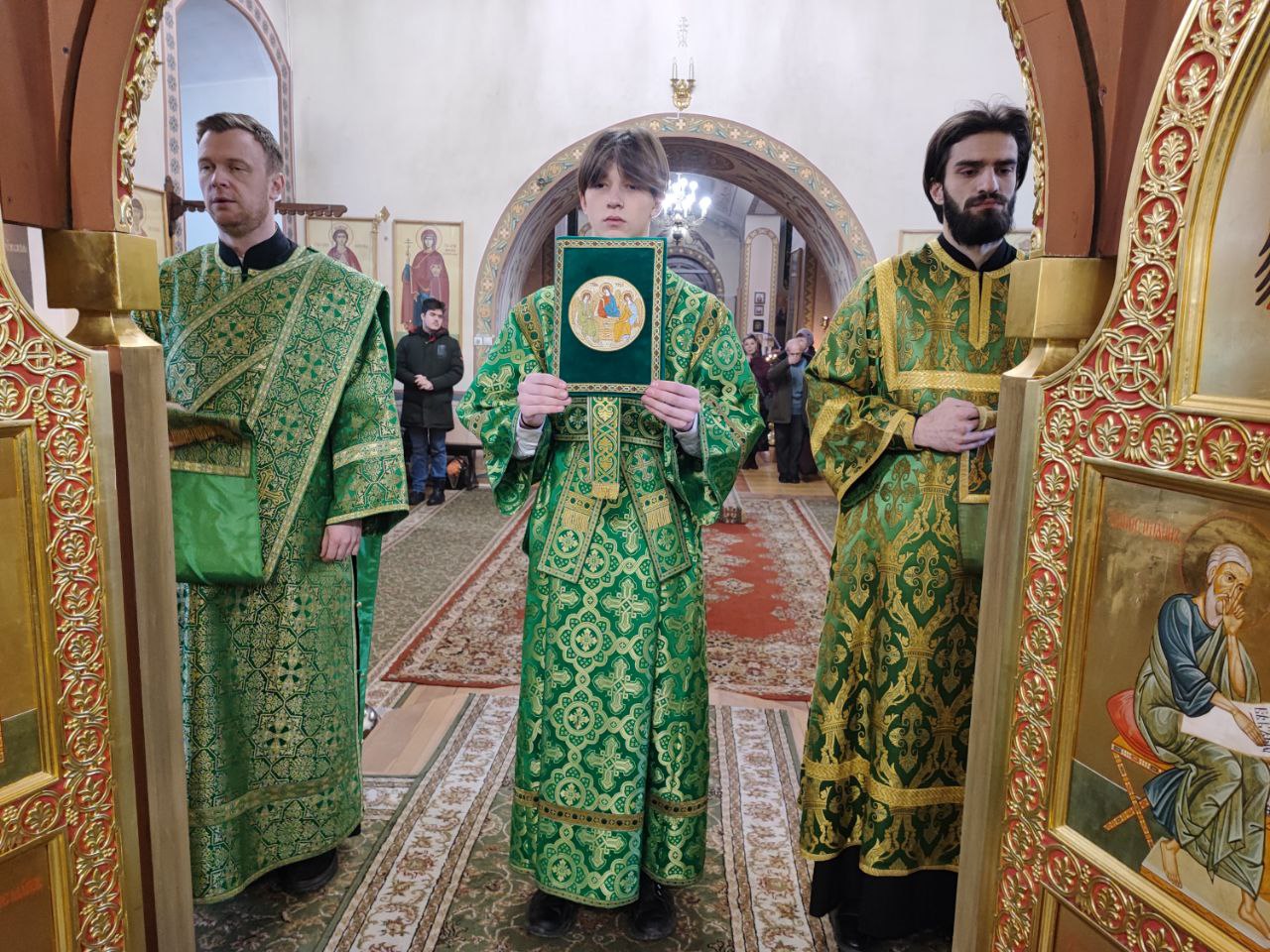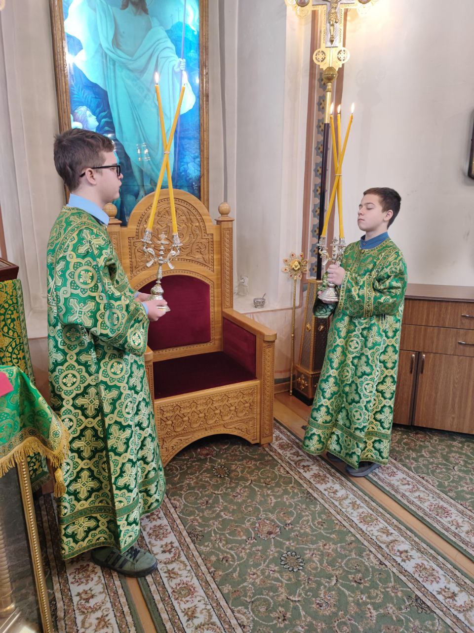 Архипастырю сослужили: настоятель храма протоиерей Сергий Сычев, протоиерей Антоний Хатунцев, иерей Виктор Носов, иеромонах Лука (Старостин), диакон Евгений Ковригин и диакон Дамиан Рупасов.