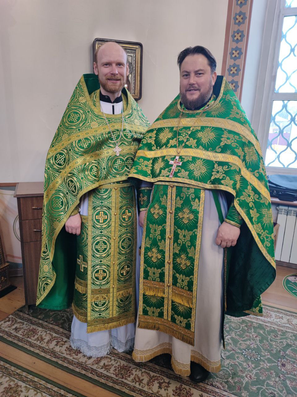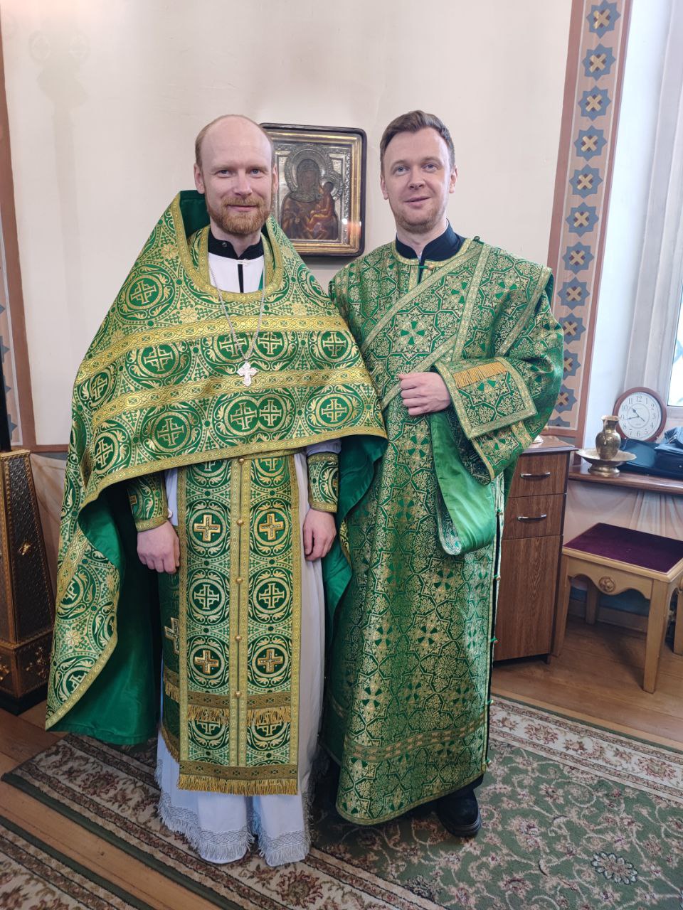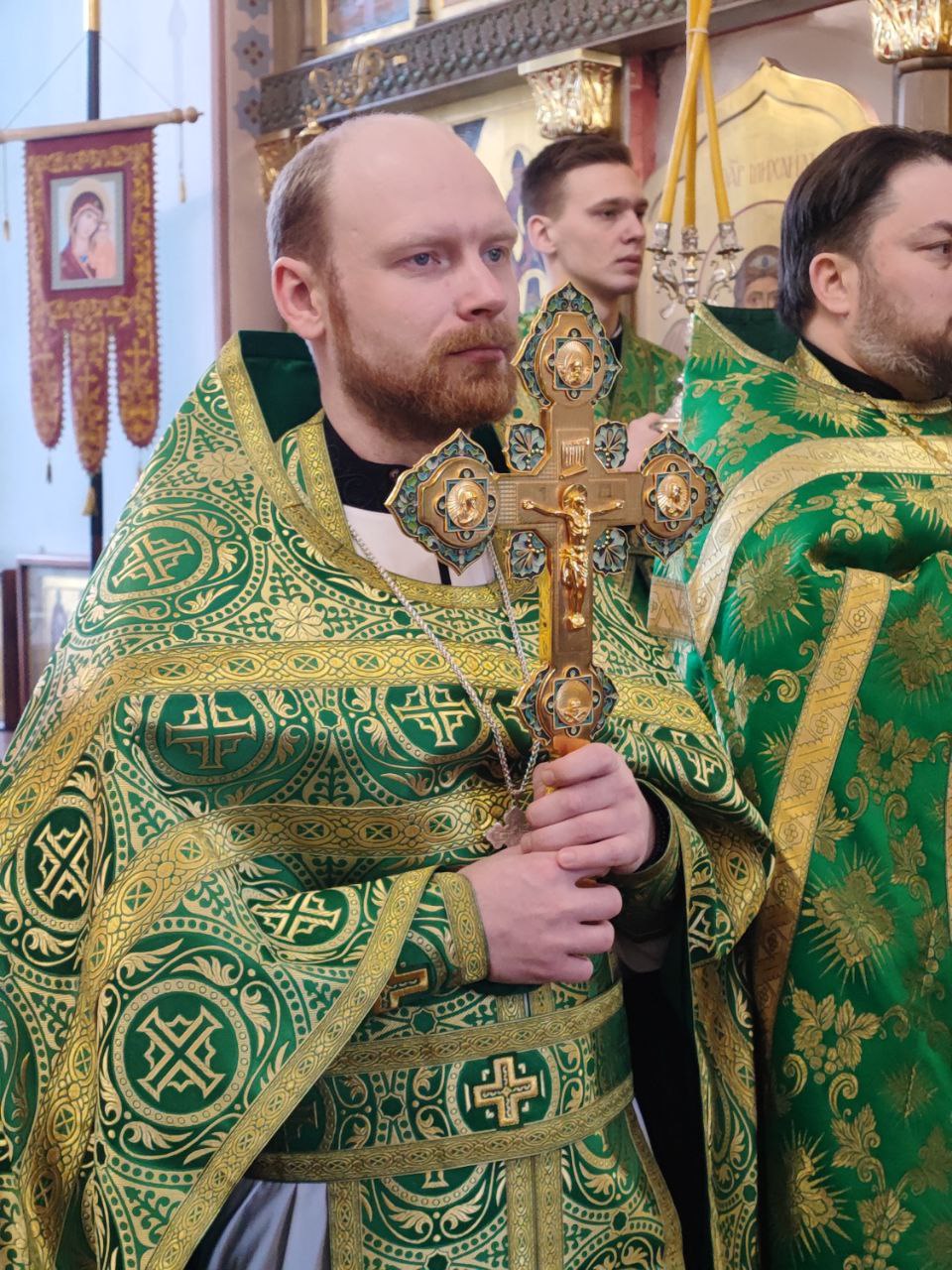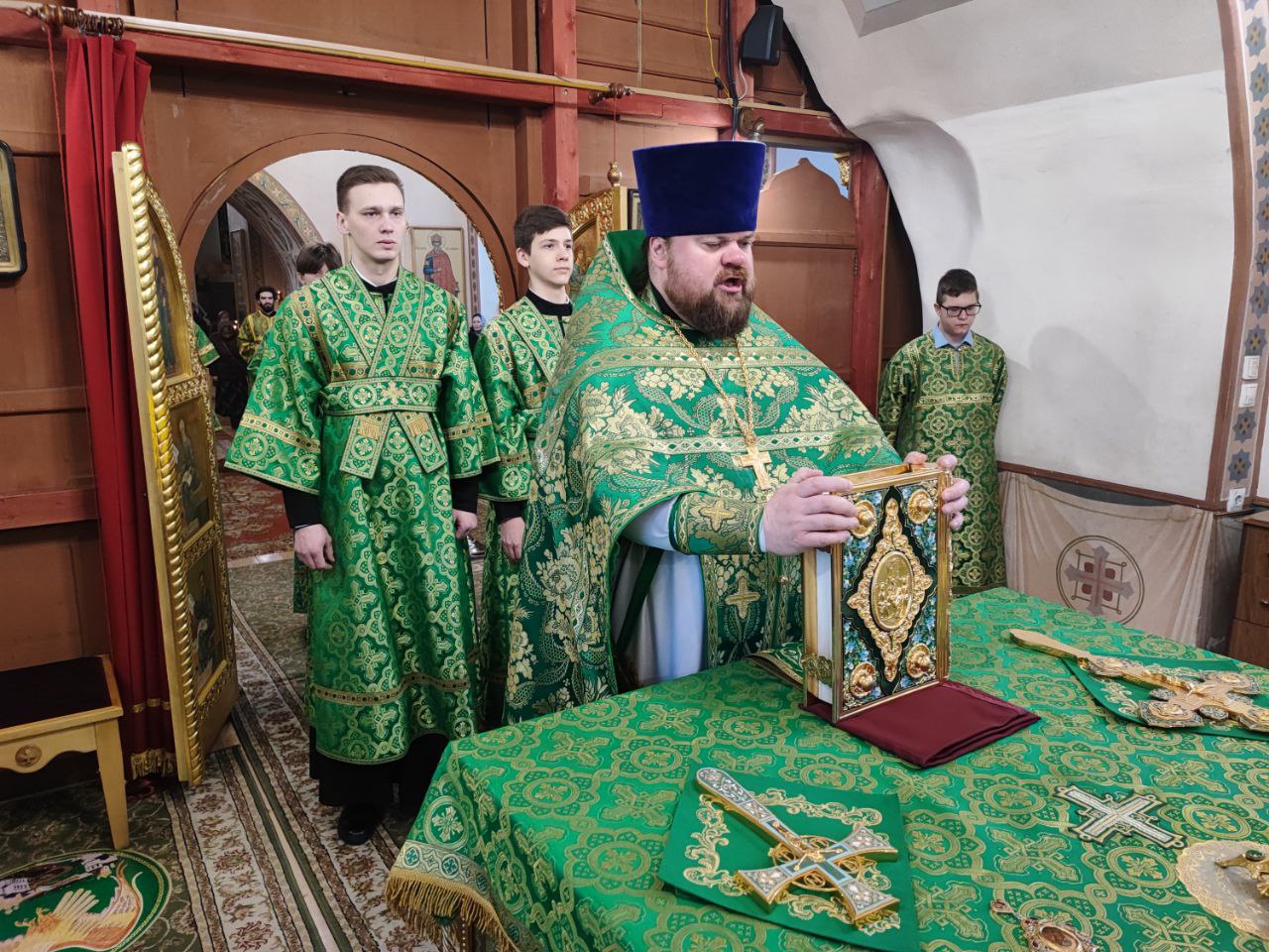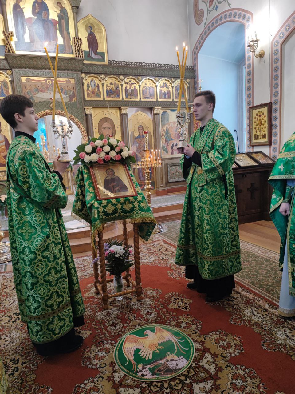 Архипастырю сослужили: настоятель храма протоиерей Сергий Сычев, протоиерей Антоний Хатунцев, иерей Виктор Носов, иеромонах Лука (Старостин), диакон Евгений Ковригин и диакон Дамиан Рупасов.