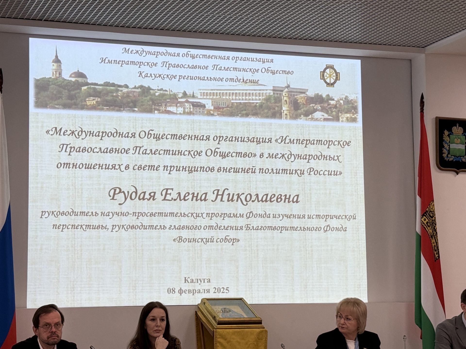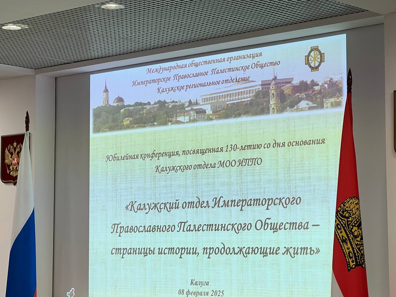 8 февраля в Доме правительства Калужской области состоялась юбилейная конференция, посвященная 130-летию со дня основания Калужского отдела МОО ИППО «Калужский отдел Императорского Православного Палестинского Общества — страницы истории, продолжающие жить». Конференцию предваряла выставка картин российских и зарубежных художников «Палестина в наших сердцах». Перед началом мероприятия духовенством Калужской епархии был совершен Молебен на начало всякого благого дела.