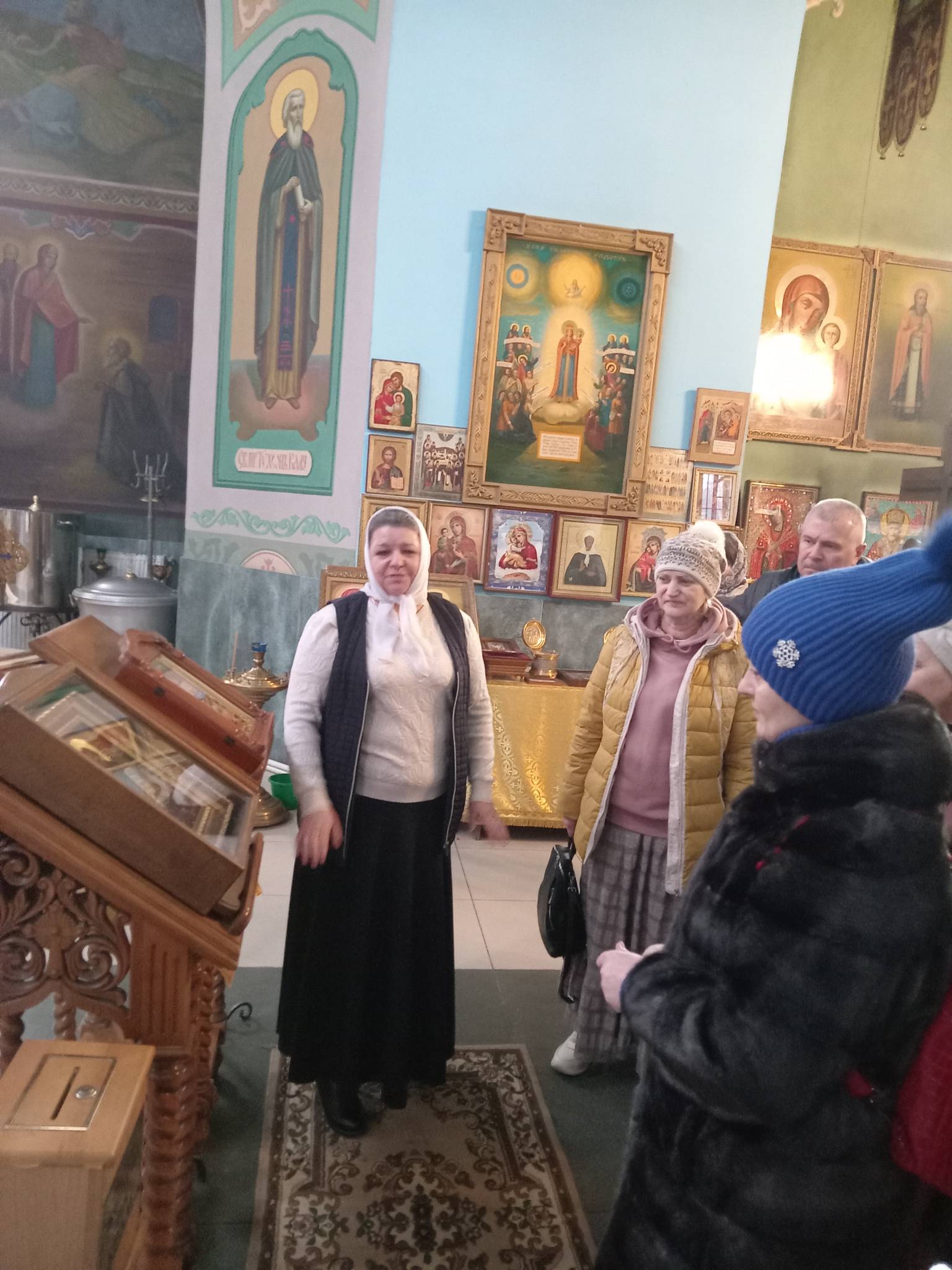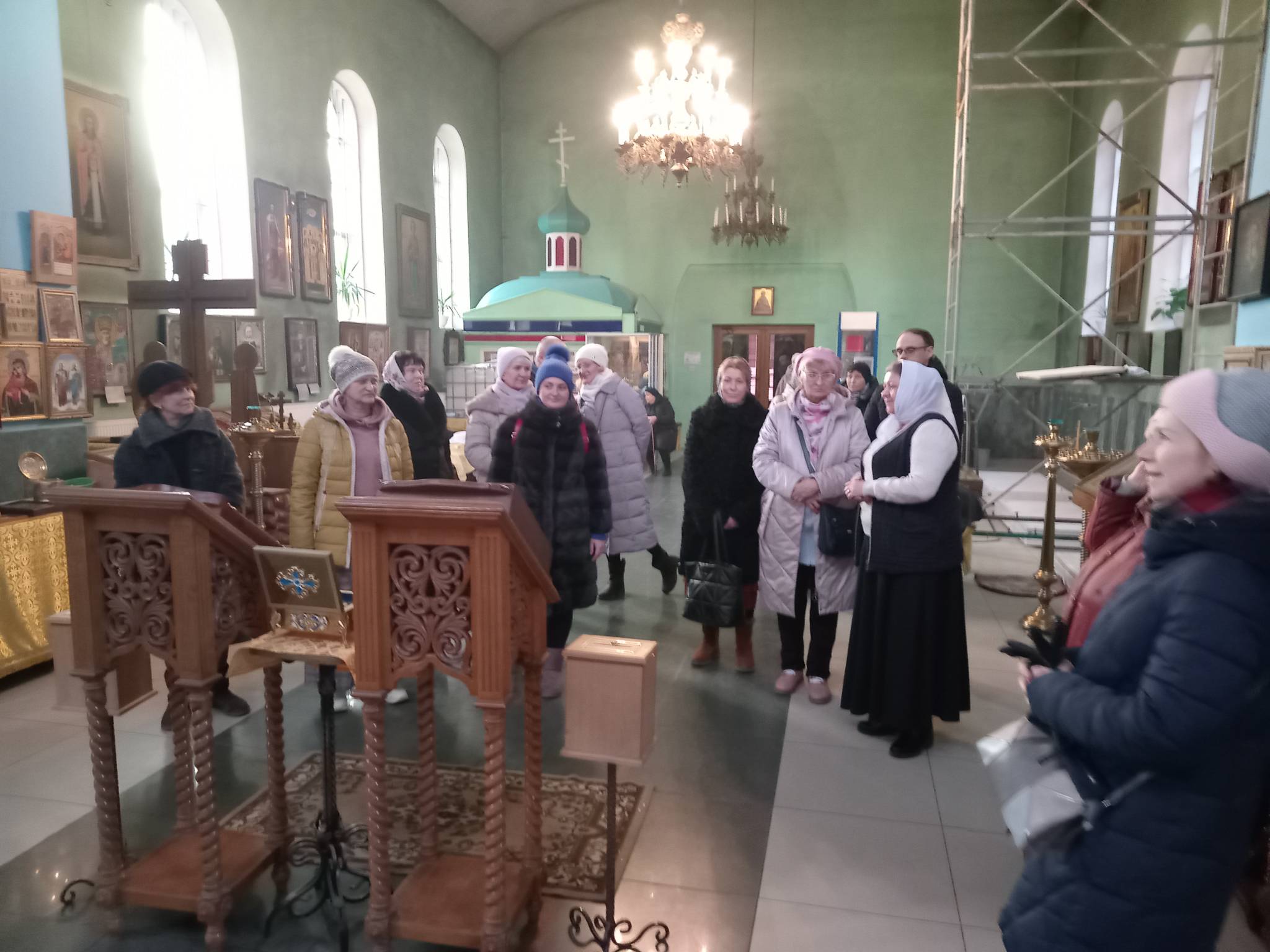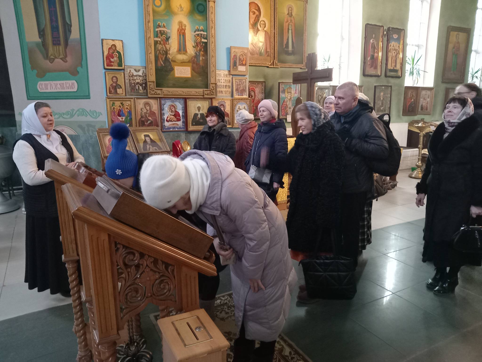 9 февраля, в неделю о мытаре и фарисее, по благословению настоятеля храма преподобного Сергия Радонежского в городе Людиново протоиерея Василия Биляк состоялась экскурсия для паломников из Свято-Лаврентьева монастыря города Калуги. Руководитель Воскресной школы «Радонеж» Клячина Татьяна Ивановна рассказала паломникам об истории храма и о святынях, которые находятся в храме. В ходе экскурсии паломники проявляли неподдельный интерес к храму и его истории. С интересом и вниманием слушали краткие жития святых, чьи мощи находятся в храме. Паломники приложились к частичкам святых мощей и святыням храма.