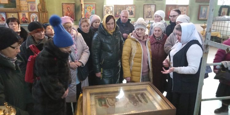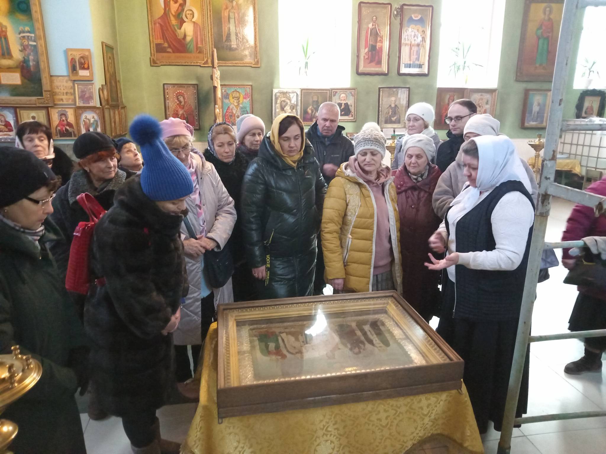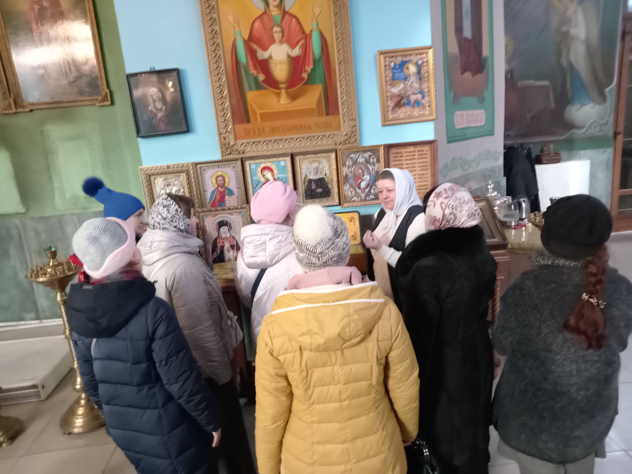 9 февраля, в неделю о мытаре и фарисее, по благословению настоятеля храма преподобного Сергия Радонежского в городе Людиново протоиерея Василия Биляк состоялась экскурсия для паломников из Свято-Лаврентьева монастыря города Калуги. Руководитель Воскресной школы «Радонеж» Клячина Татьяна Ивановна рассказала паломникам об истории храма и о святынях, которые находятся в храме. В ходе экскурсии паломники проявляли неподдельный интерес к храму и его истории. С интересом и вниманием слушали краткие жития святых, чьи мощи находятся в храме. Паломники приложились к частичкам святых мощей и святыням храма.