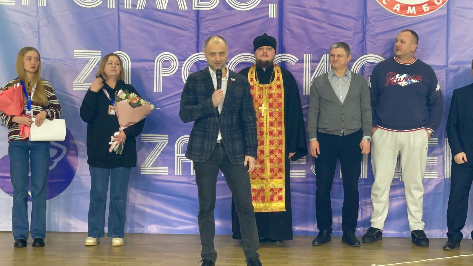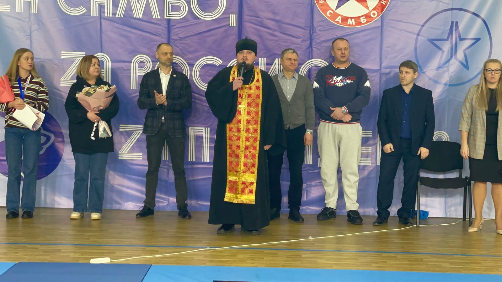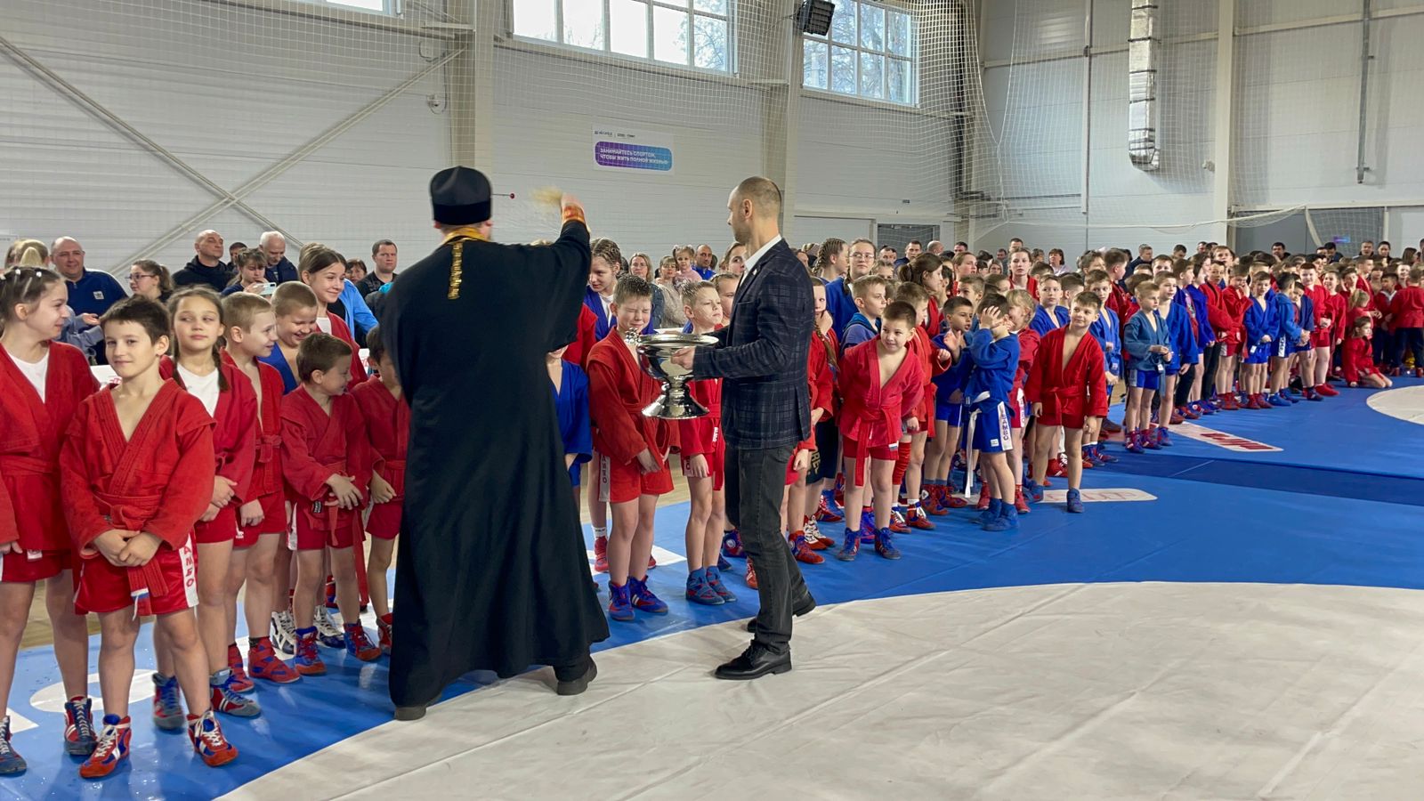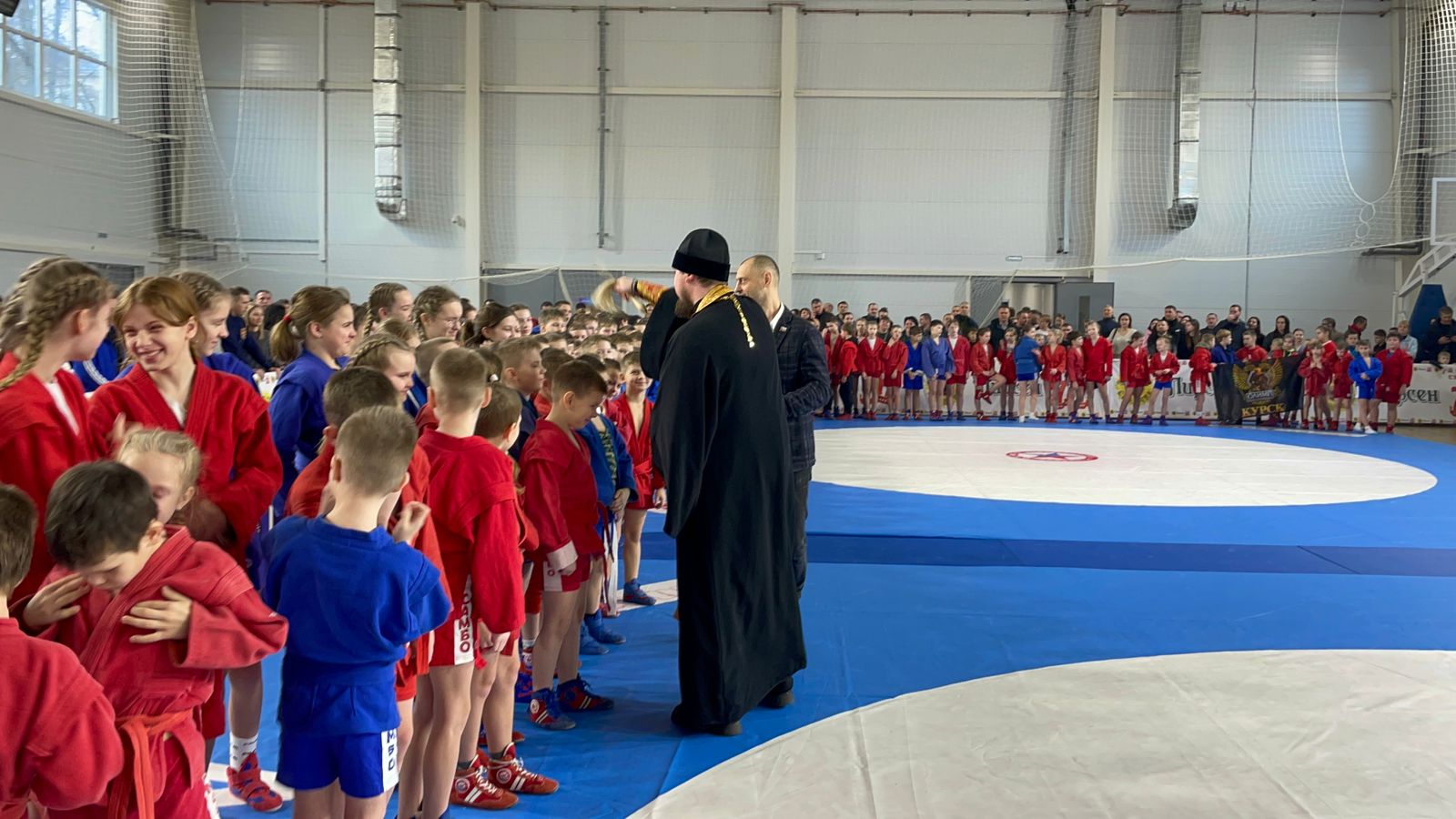 8 февраля в городе Людиново состоялся IX Межрегиональный турнир по самбо памяти Вилора Казакова. На это важное спортивное событие был приглашен настоятель храма в честь иконы Божией Матери «Живоносный Источник» иерей Иоанн Майоров. Он обратился к участникам и зрителям с напутственными словами, пожелал честной борьбы, объективного судейства и, что немаловажно, соревнований без травм. После своего выступления батюшка окропил святой водой всех присутствующих, благословляя спортсменов на достойную борьбу и всех собравшихся на мирный и яркий спортивный праздник.