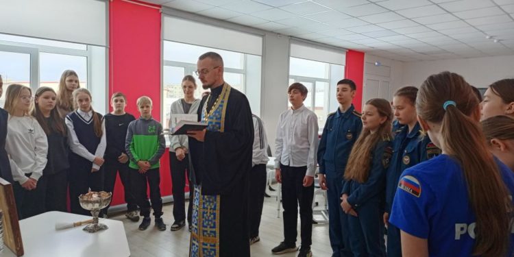 15 февраля 2025 года, в праздник Сретения Господня, после богослужений, клирик Казанского собора города Людиново иерей Алексий Сначев освятил в средней школе № 2 города Людиново маскировочные сети, изготовленные учащимися и сотрудниками школы. Перед освящением маскировочных сетей, отец Алексий поздравил учеников и их наставников с праздником Сретения Господня и с Днём православной молодёжи, который официально установлен в этот день. Особенно батюшка отметил, что именно на нашу молодёжь возлагается большая ответственность за сохранение и передачу следующим поколениям культурной и исторической памяти, и поэтому важно задумываться и осмысливать свои действия, поступки, задумываться о смысле своей жизни. После освящения маскировочных сетей, священник окропил святой водой и собравшихся ребят, так как многие из них тоже участвовали в этом общем благом деле. Совместное соработничество священников: благочинного Людиновского округа Козельской епархии настоятеля Казанского собора протоиерея Алексия Жиганова и клирика храма иерея Алексия Сначёва всегда радует и школьников и педагогов, так как помогает решать разные вопросы, касающиеся духовного просвещения и выбора правильного жизненного пути.
