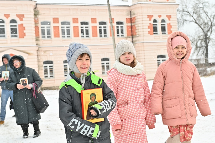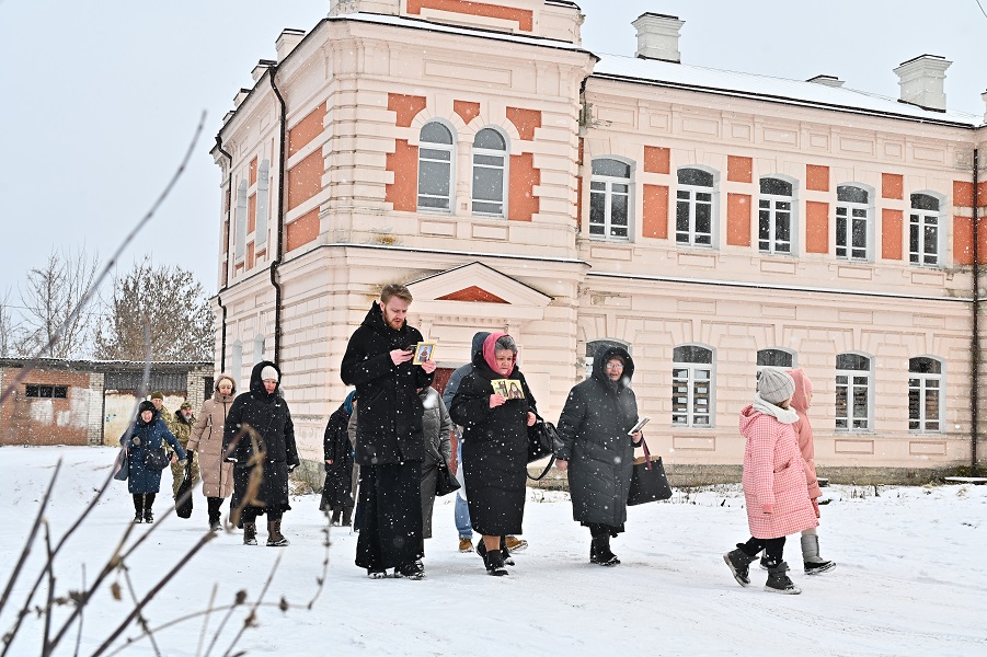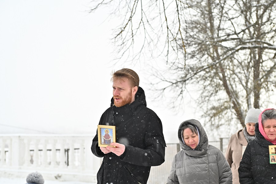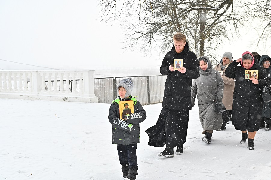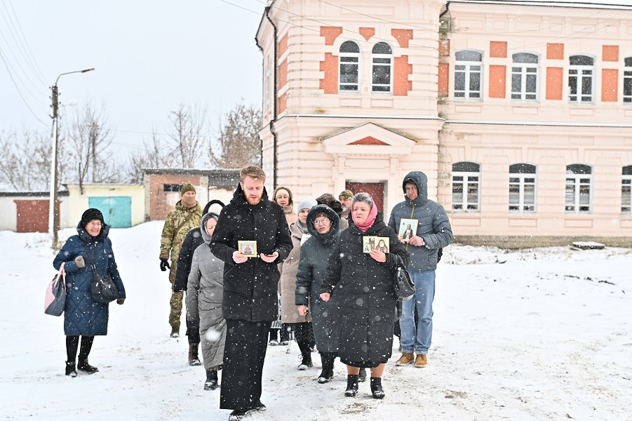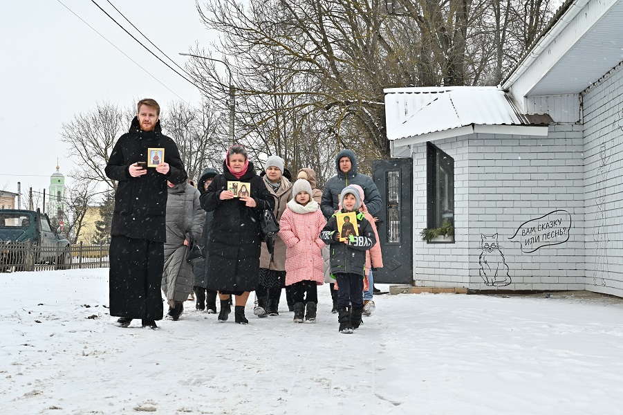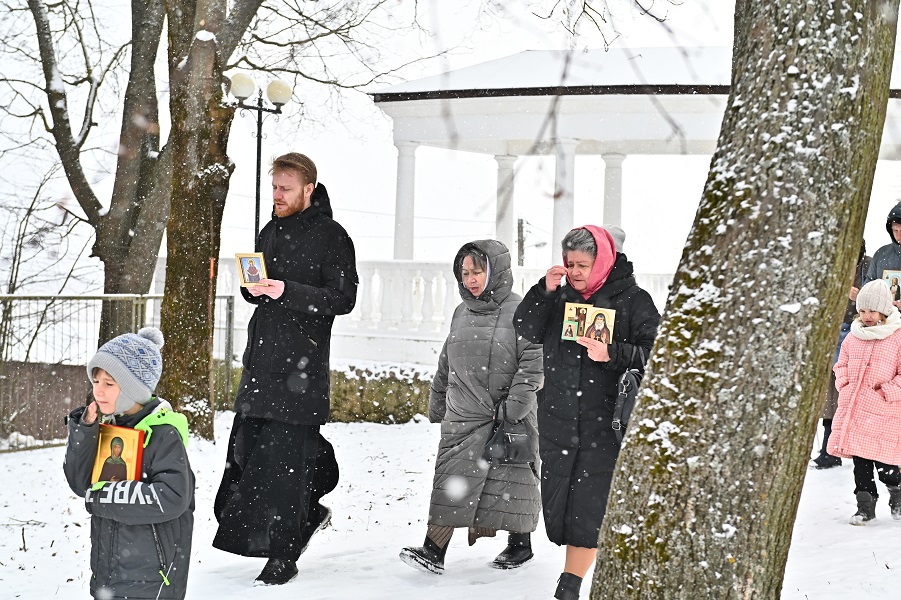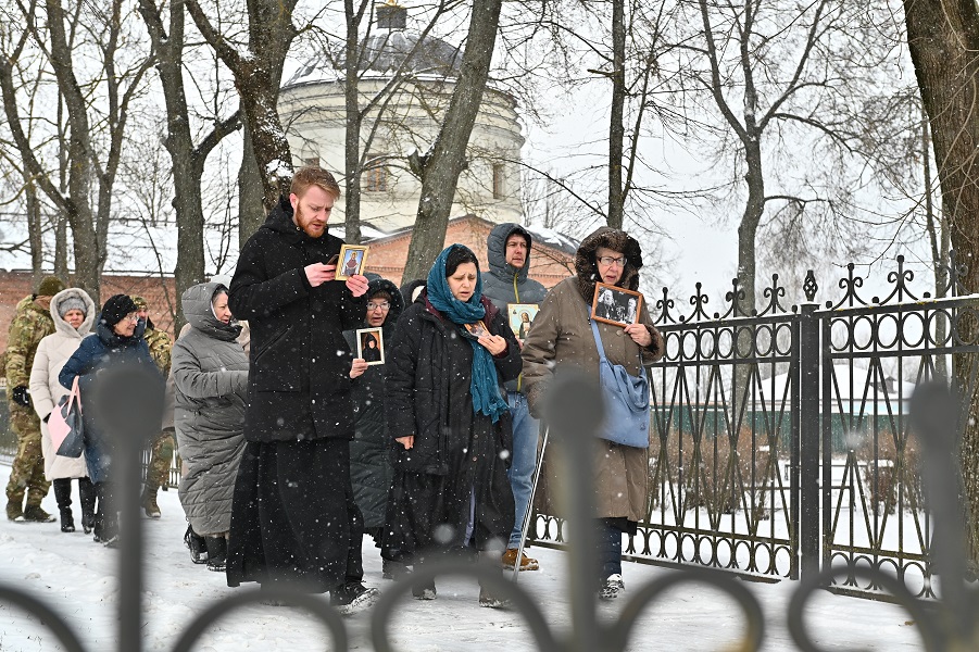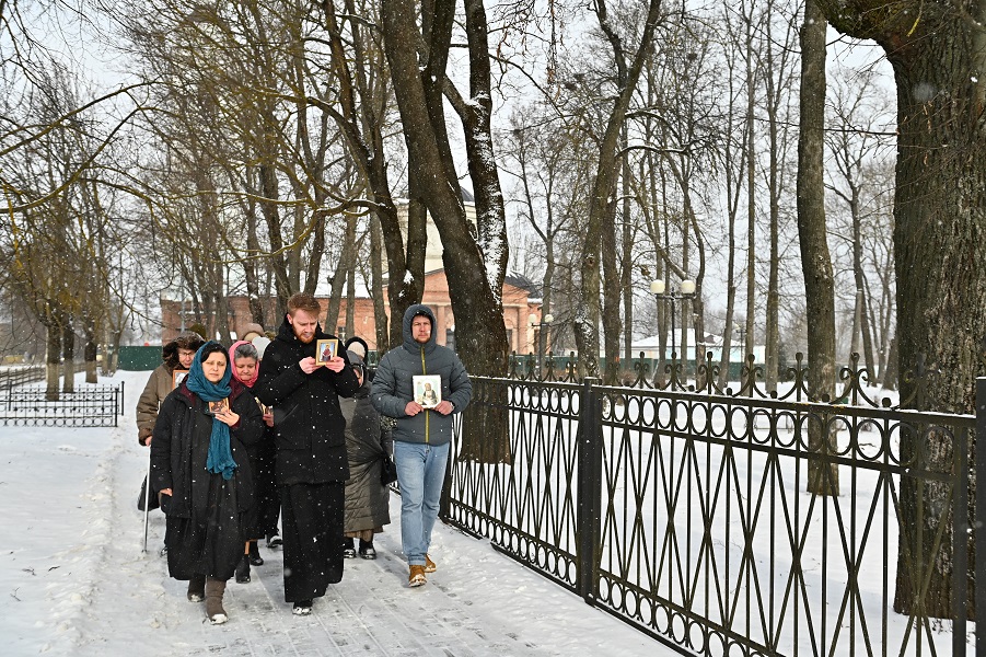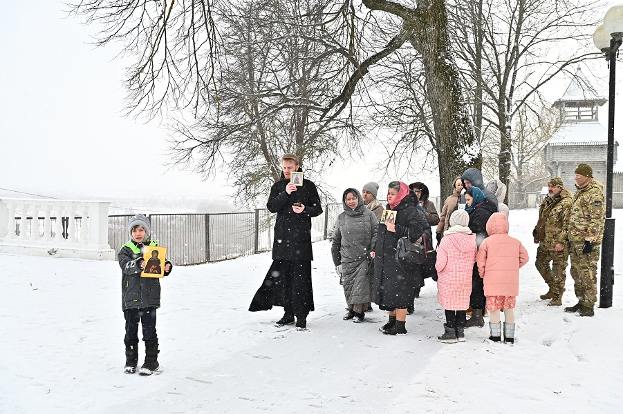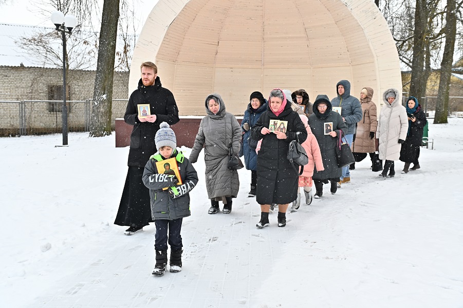 После тематической беседы, посвященной дню памяти епископа Михея и истории города Козельска начала ХХ века, иерей Елисей Тимофеев с гостями, приходской общиной и воспитанниками Воскресной школы Успенского собора прошли крестным ходом по историческому центру города Козельска.